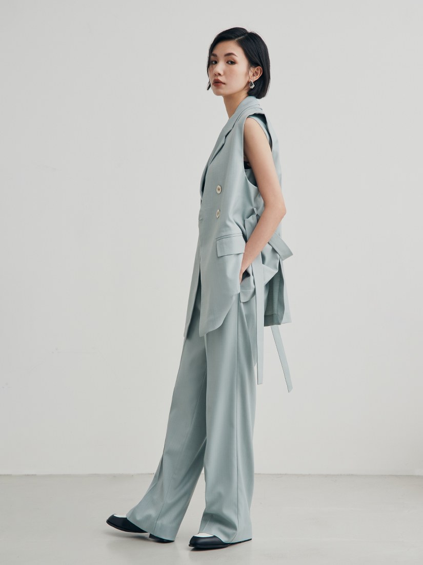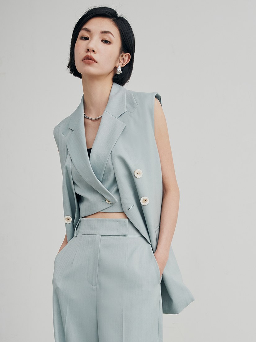 - 選用織紋感西裝面料,布面挺廓細緻、不易皺