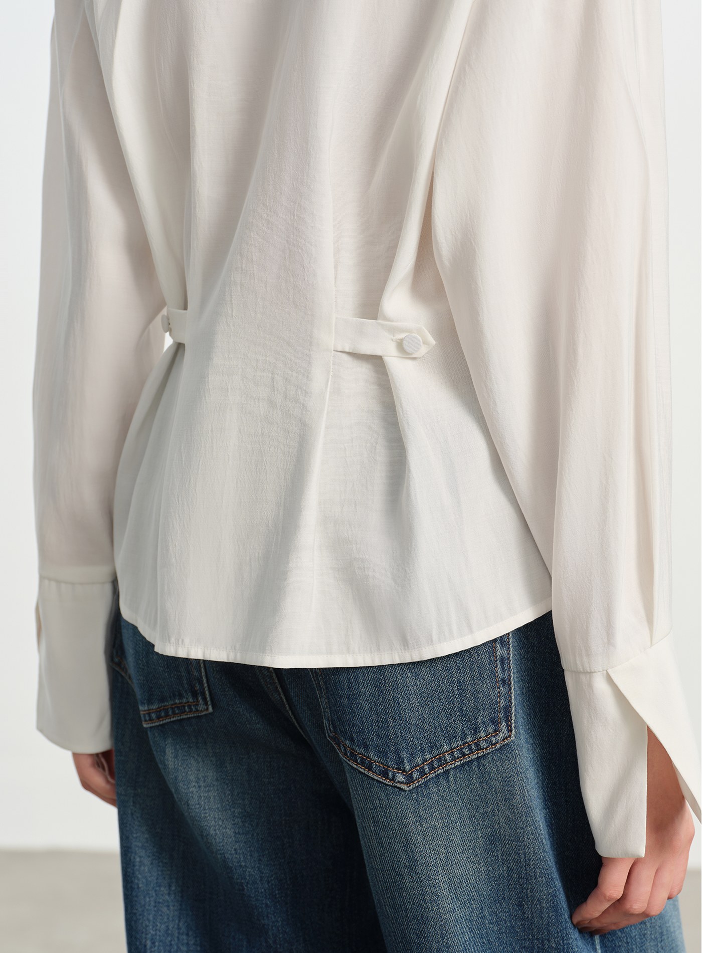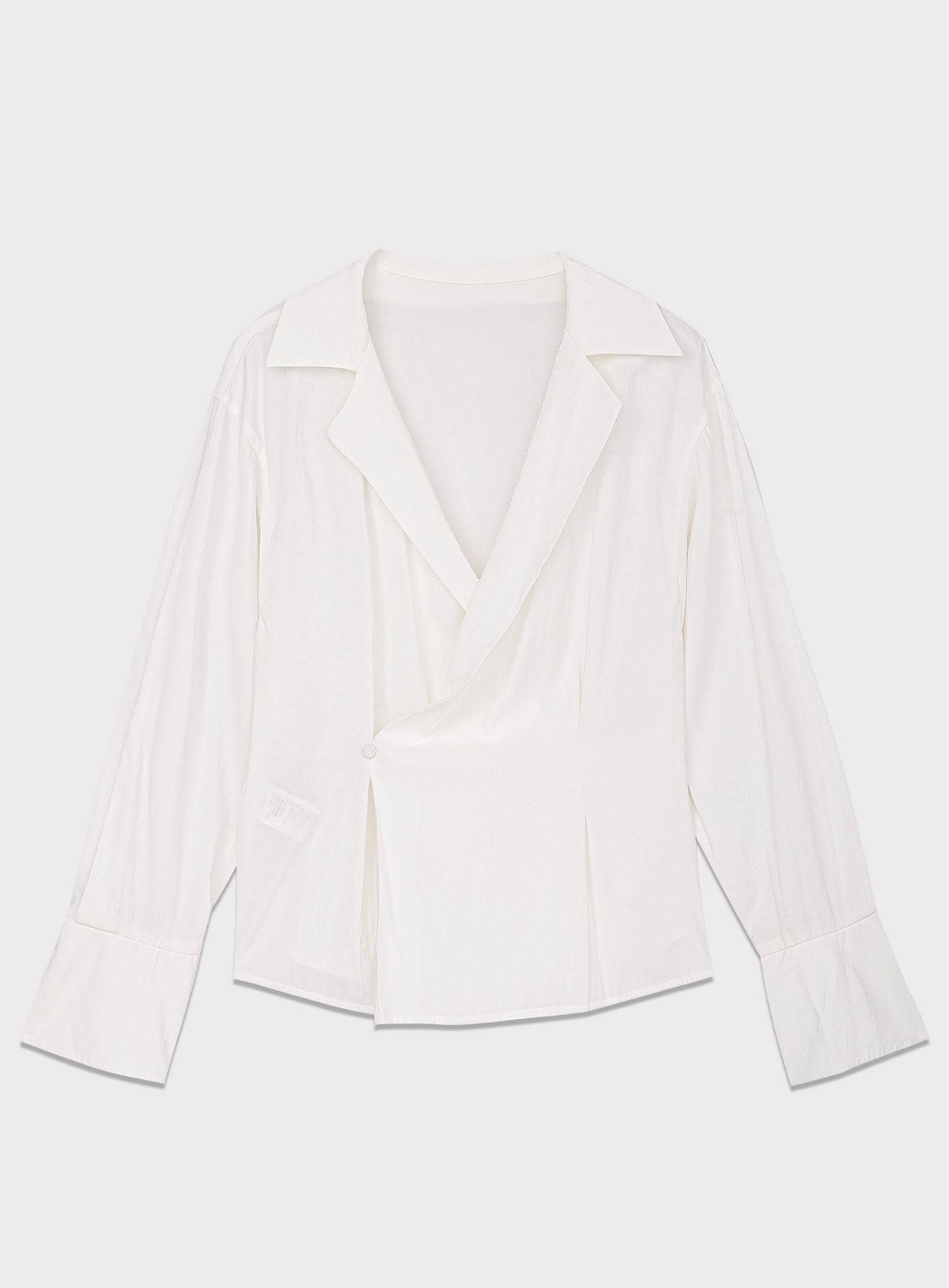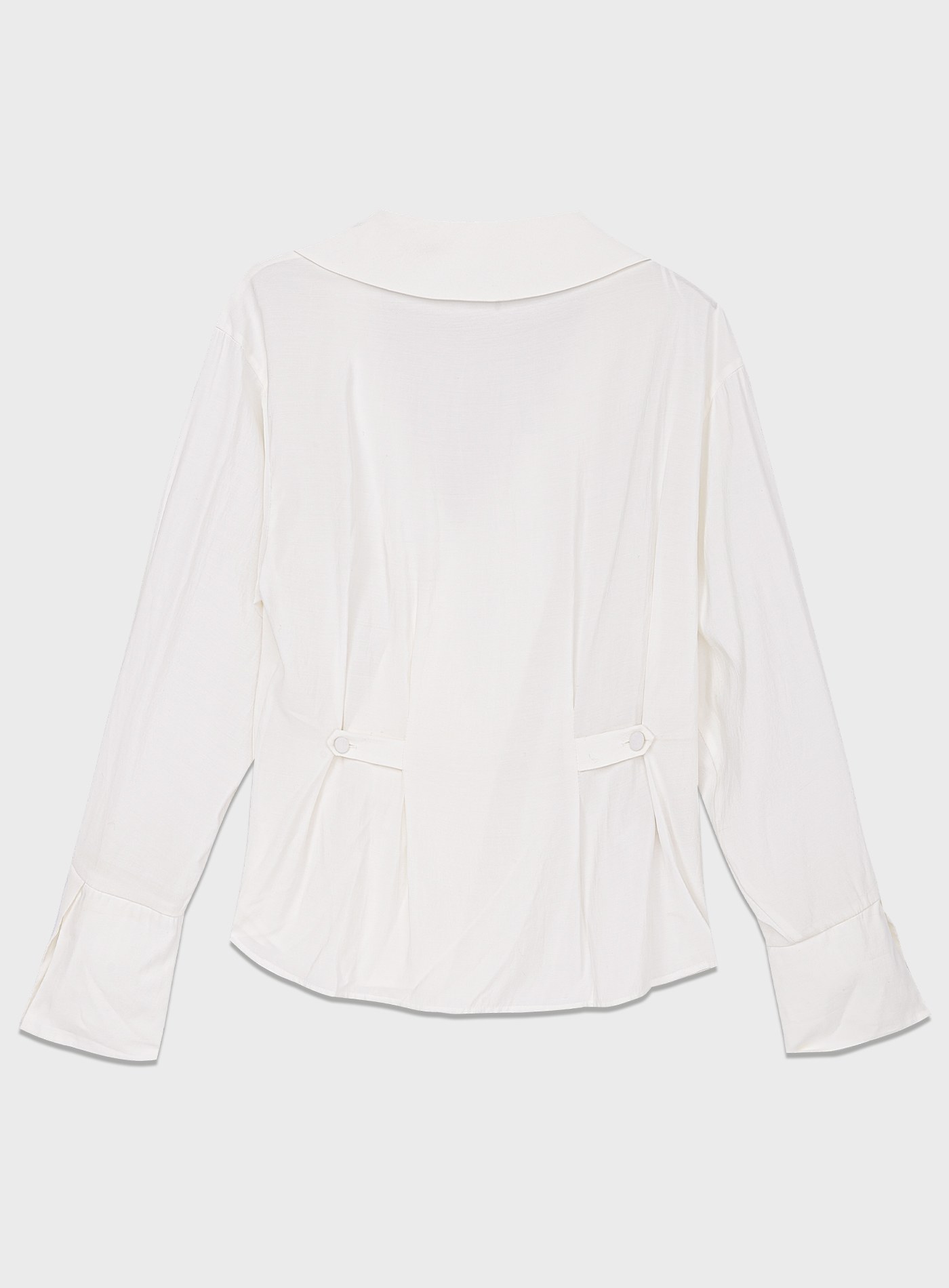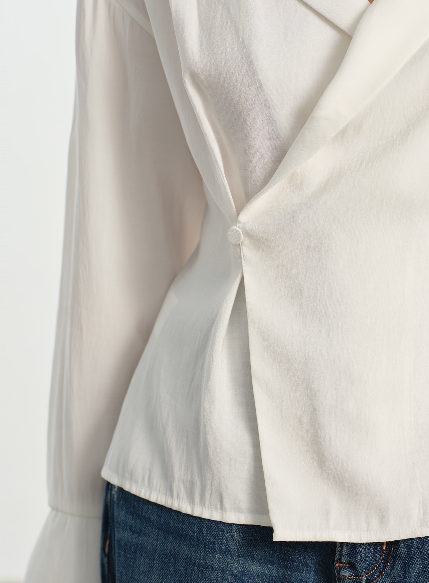 不對稱領彈力綁帶長袖襯衫$63 USD