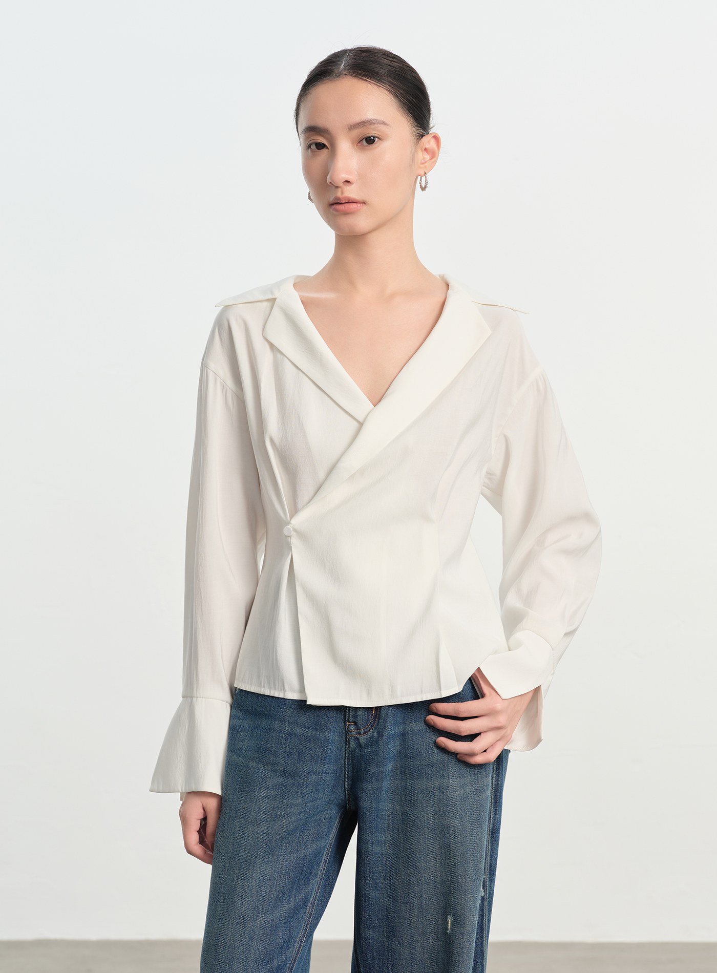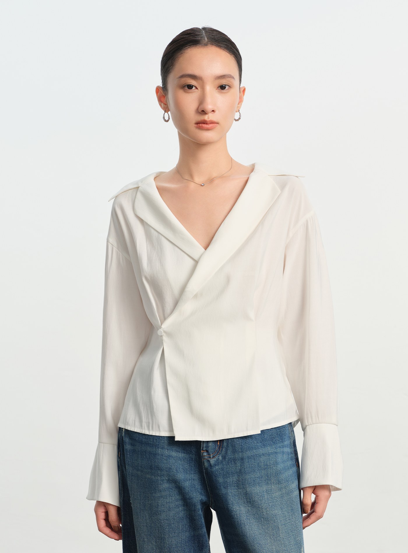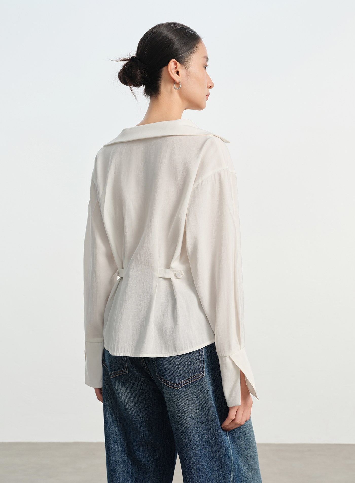 不對稱領彈力綁帶長袖襯衫$63 USD