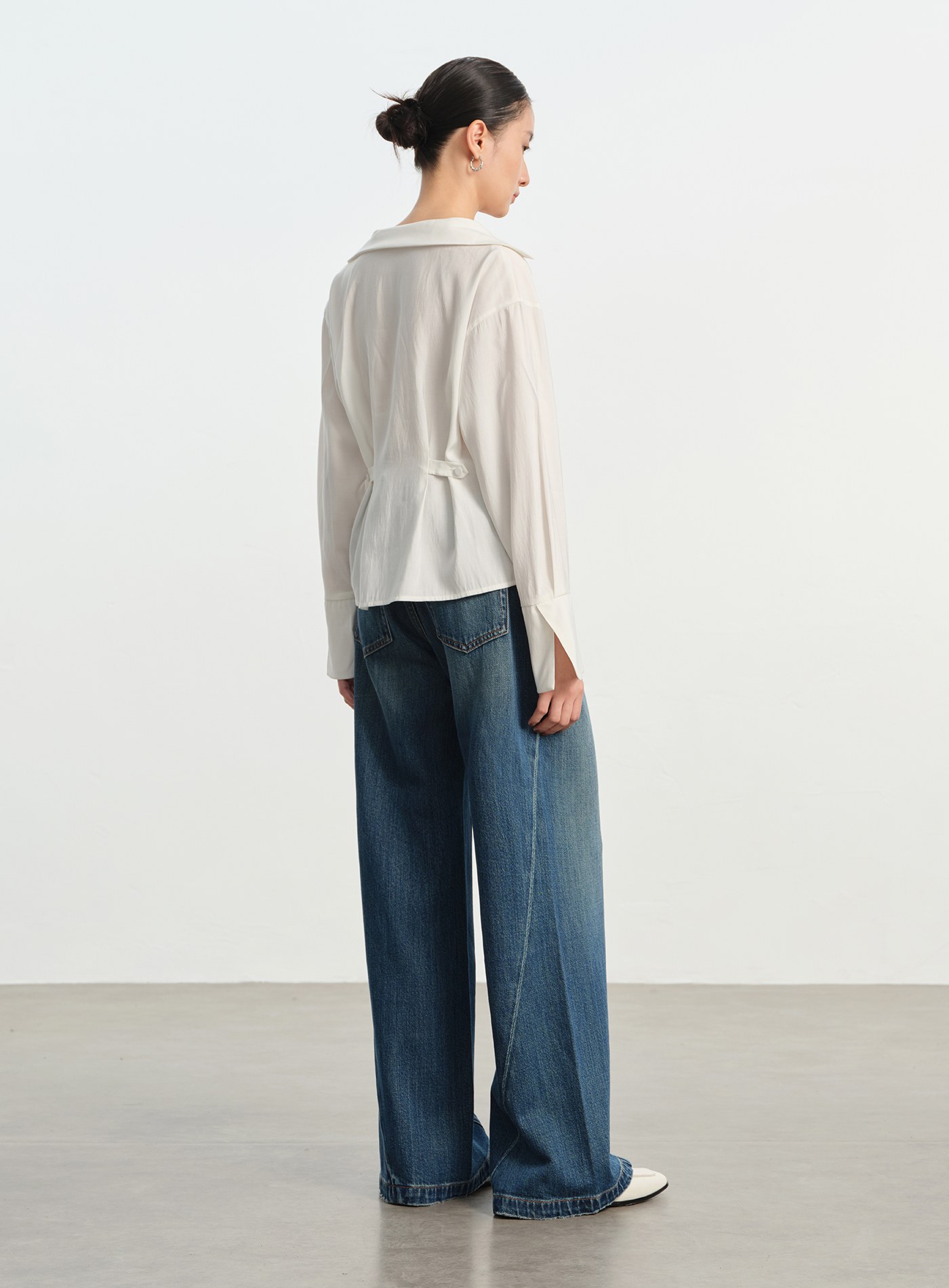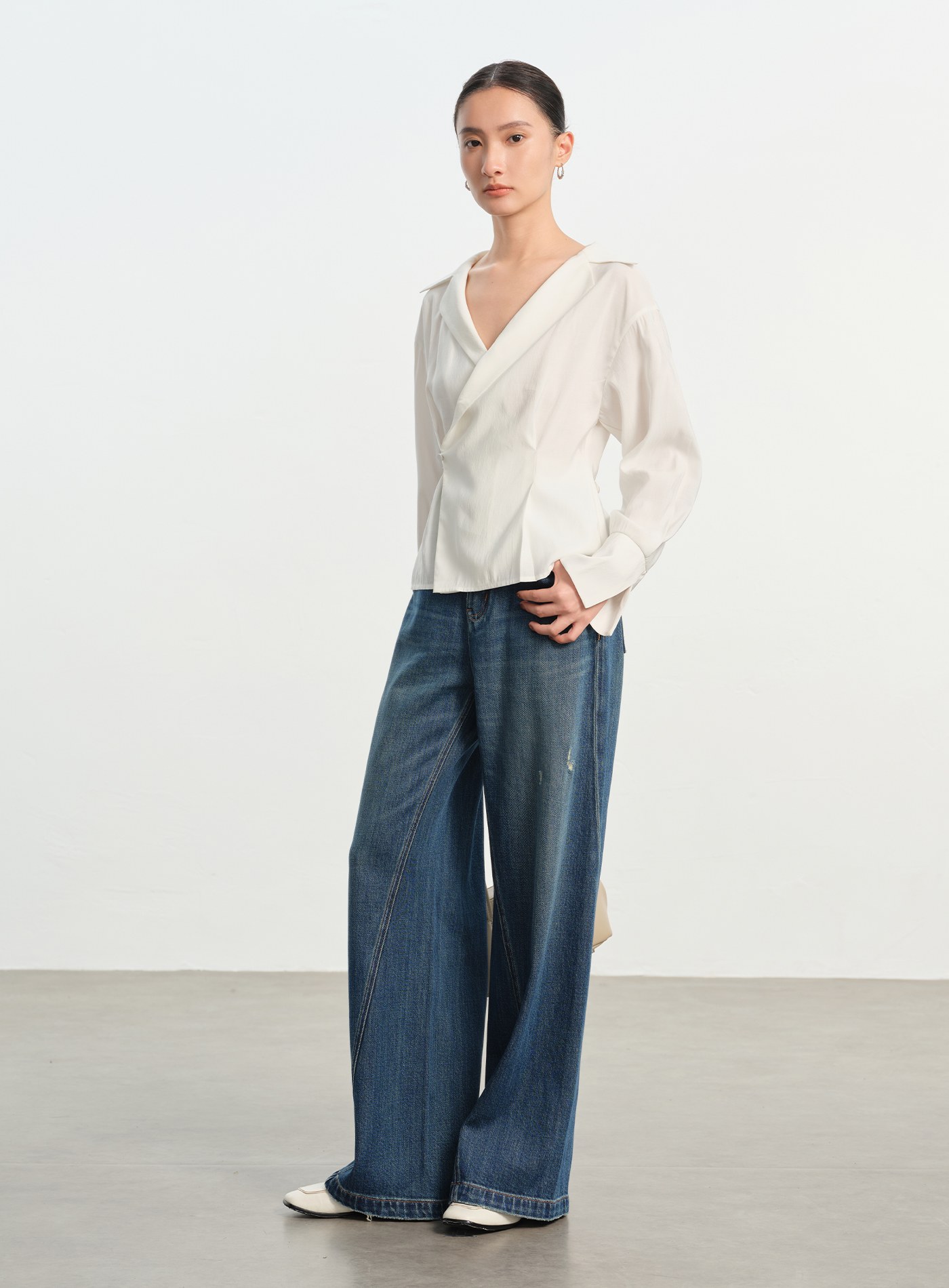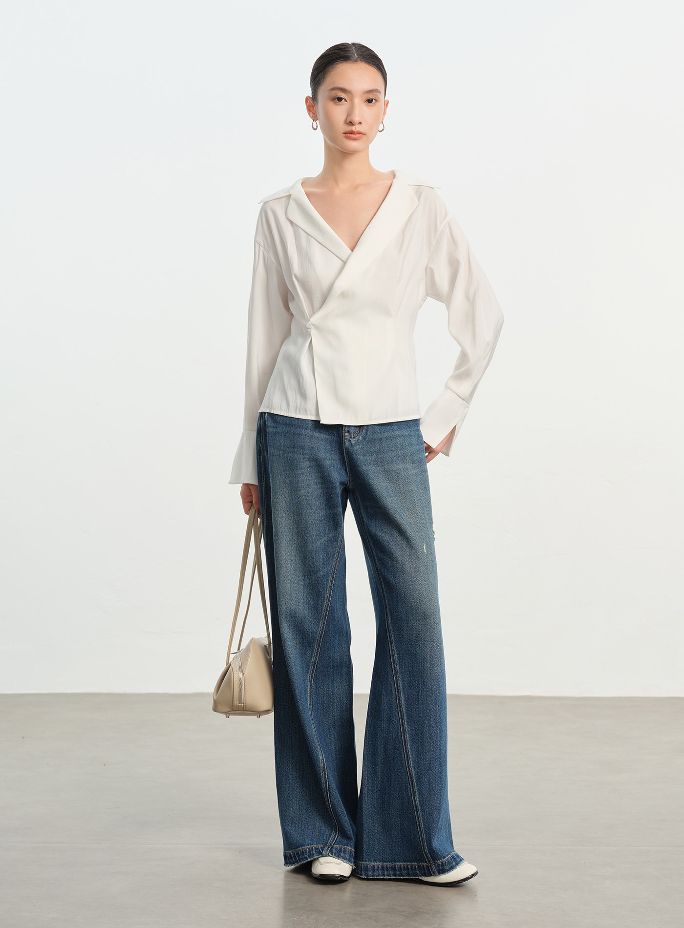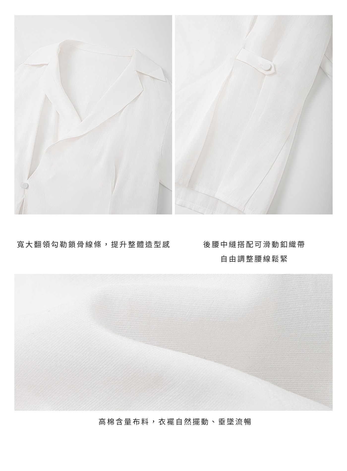 不對稱領彈力綁帶長袖襯衫$63 USD