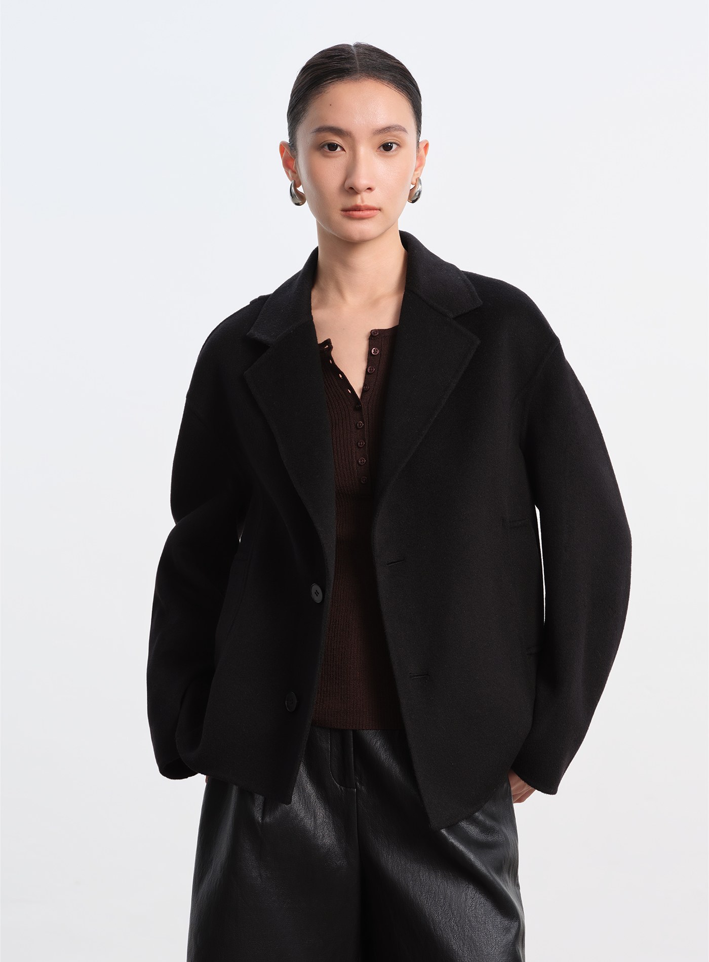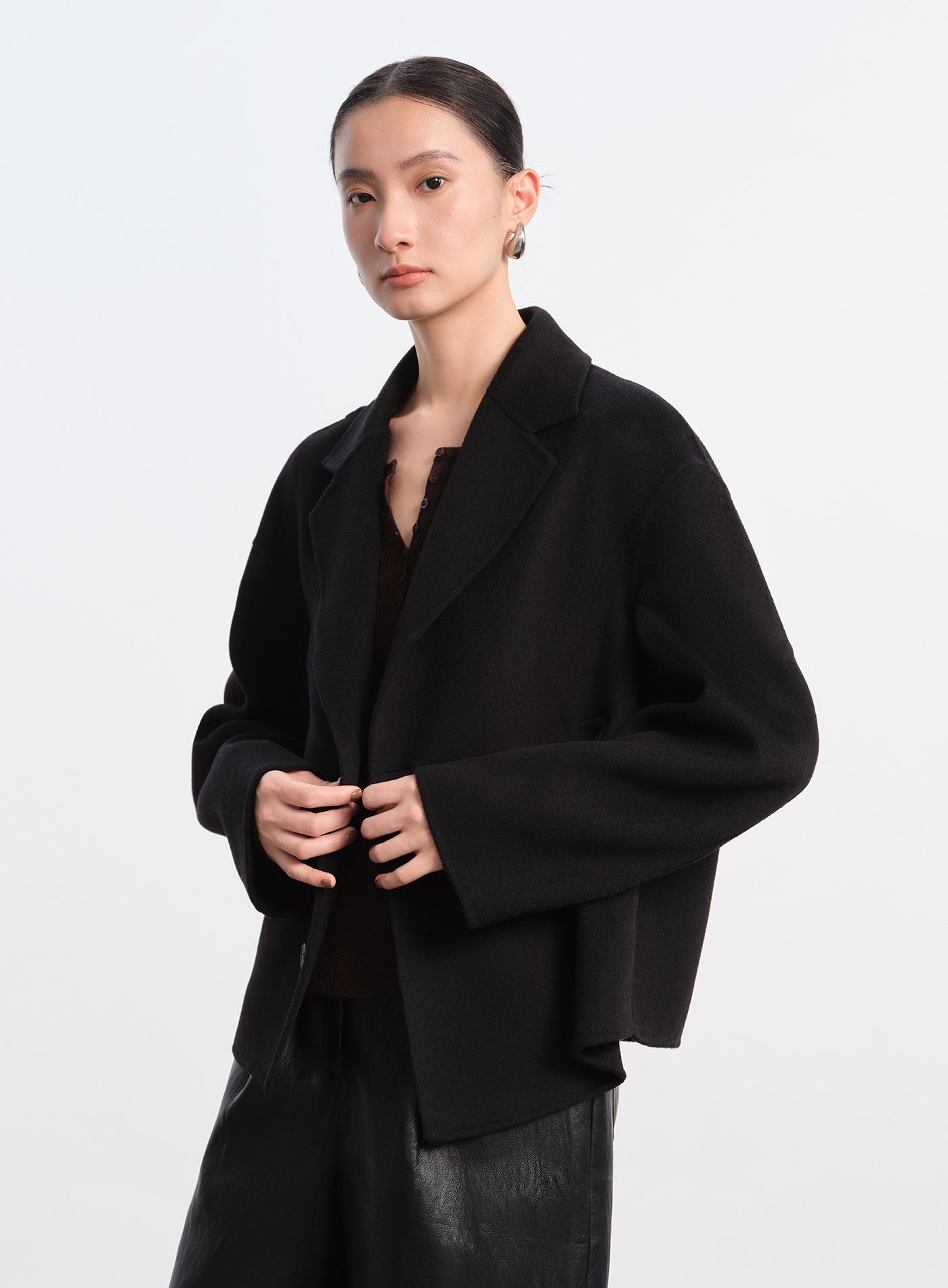 - 精選羊絨與羊毛混紡,柔軟細膩雙面呢面料