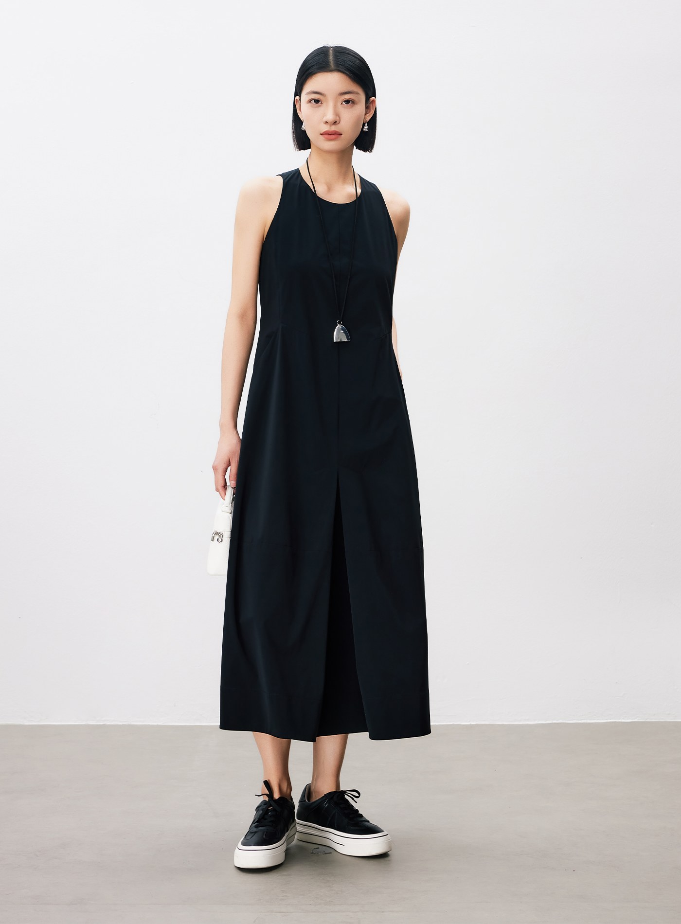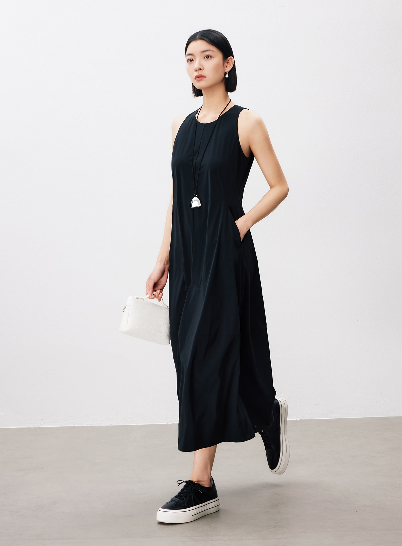 無袖壓摺綁帶飄逸洋裝$79 USD