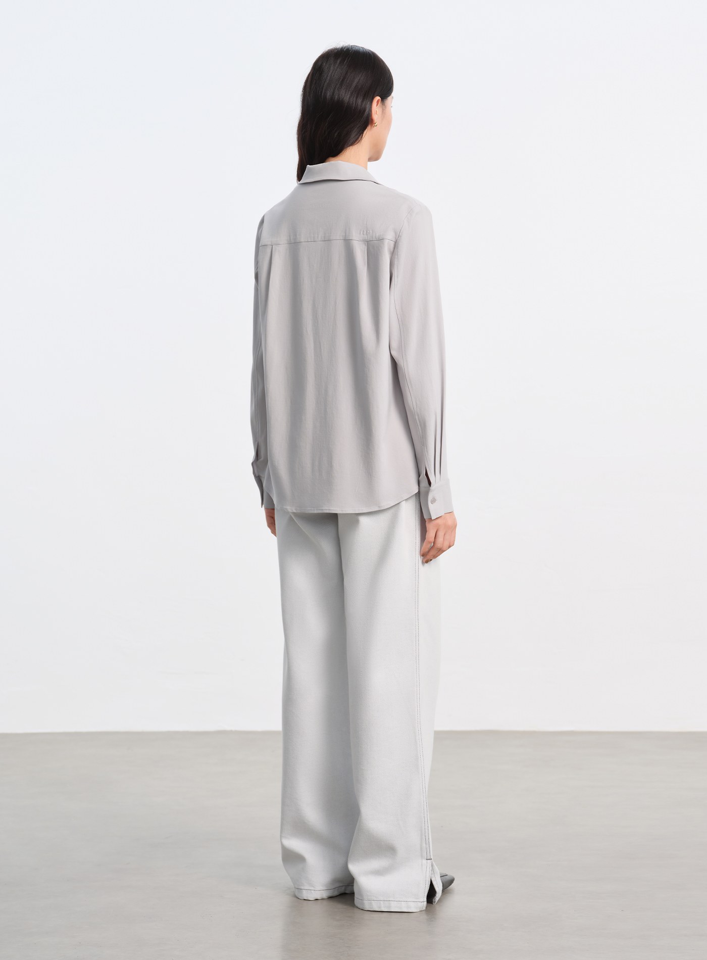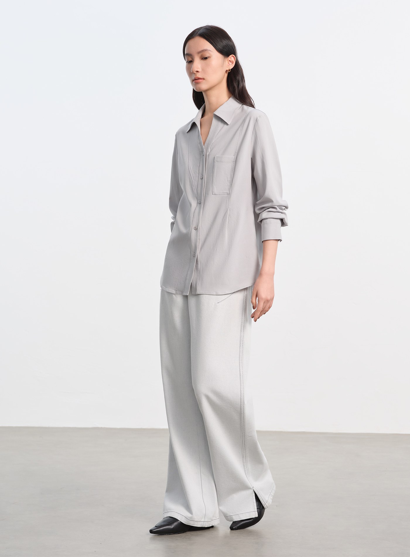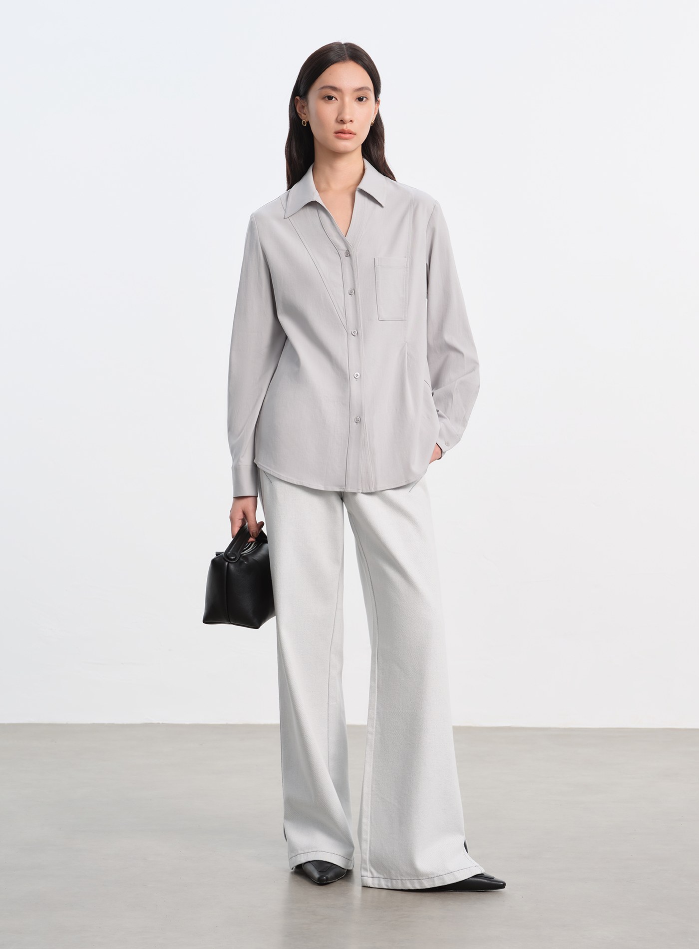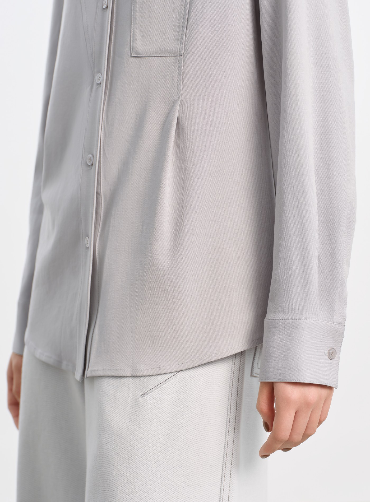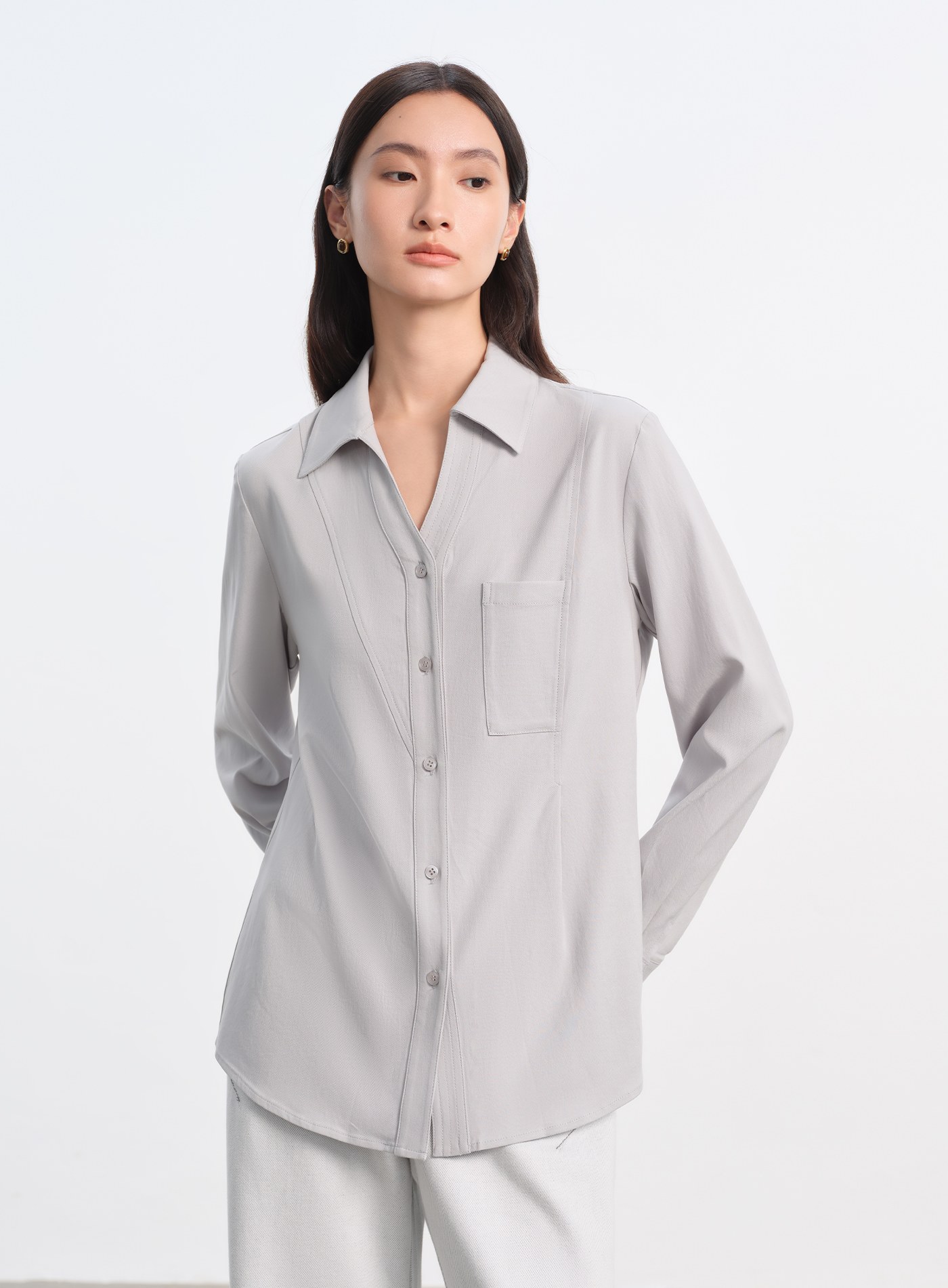 異材質拼接打摺長袖襯衫$76 USD