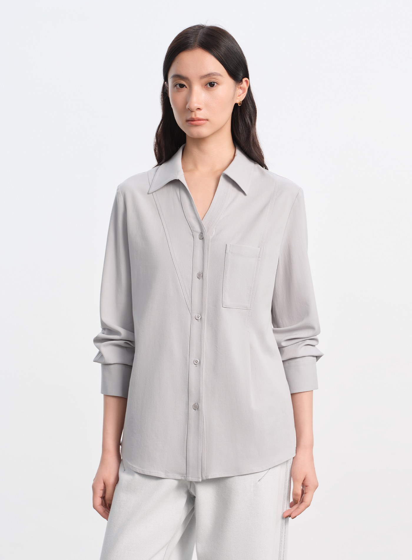 工裝風口袋紋理感雪紡襯衫$73 USD