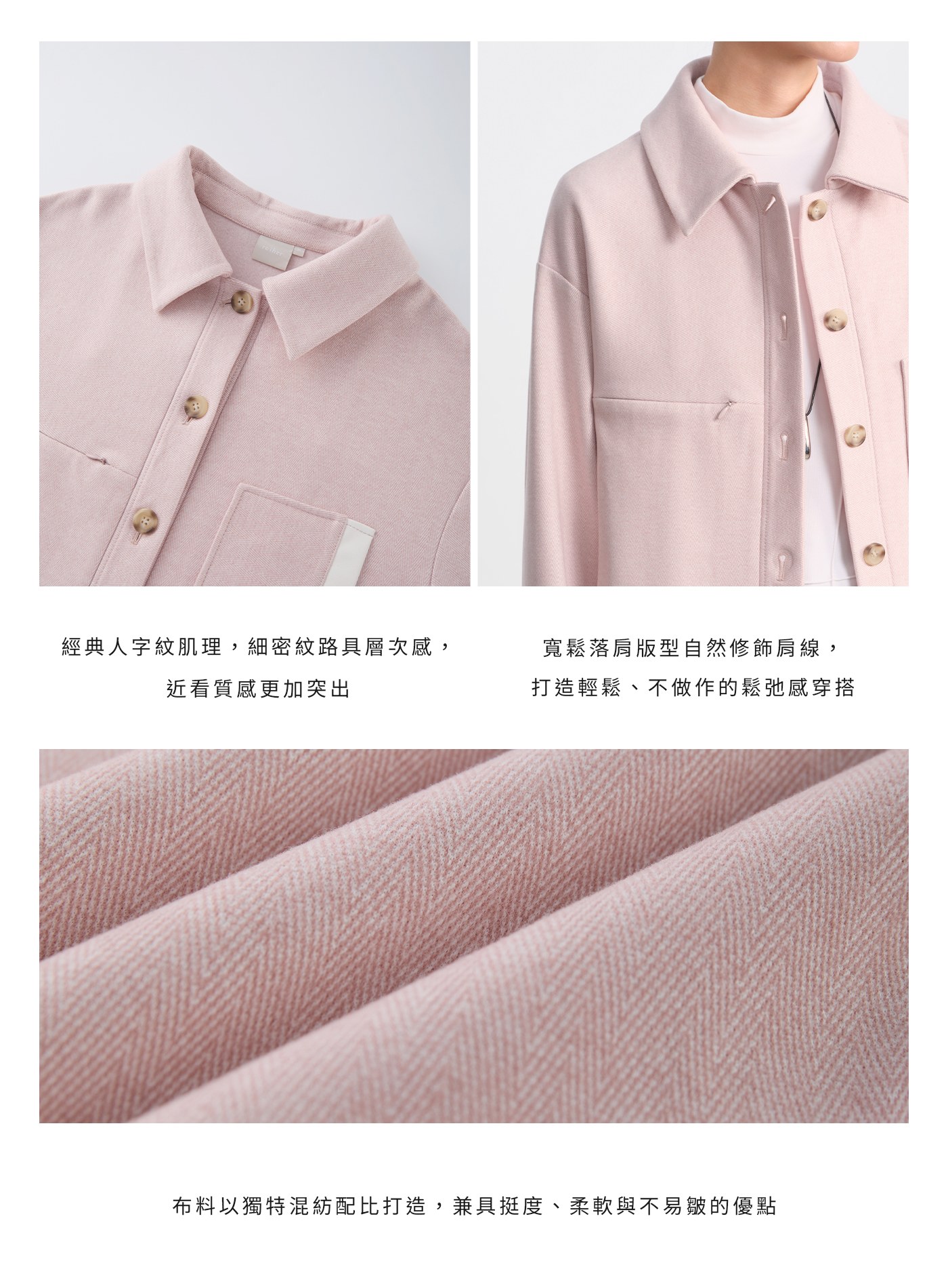• 採用寬鬆男友風版型,落肩與身形輪廓帶來輕鬆的包覆感,打造鬆弛氛圍