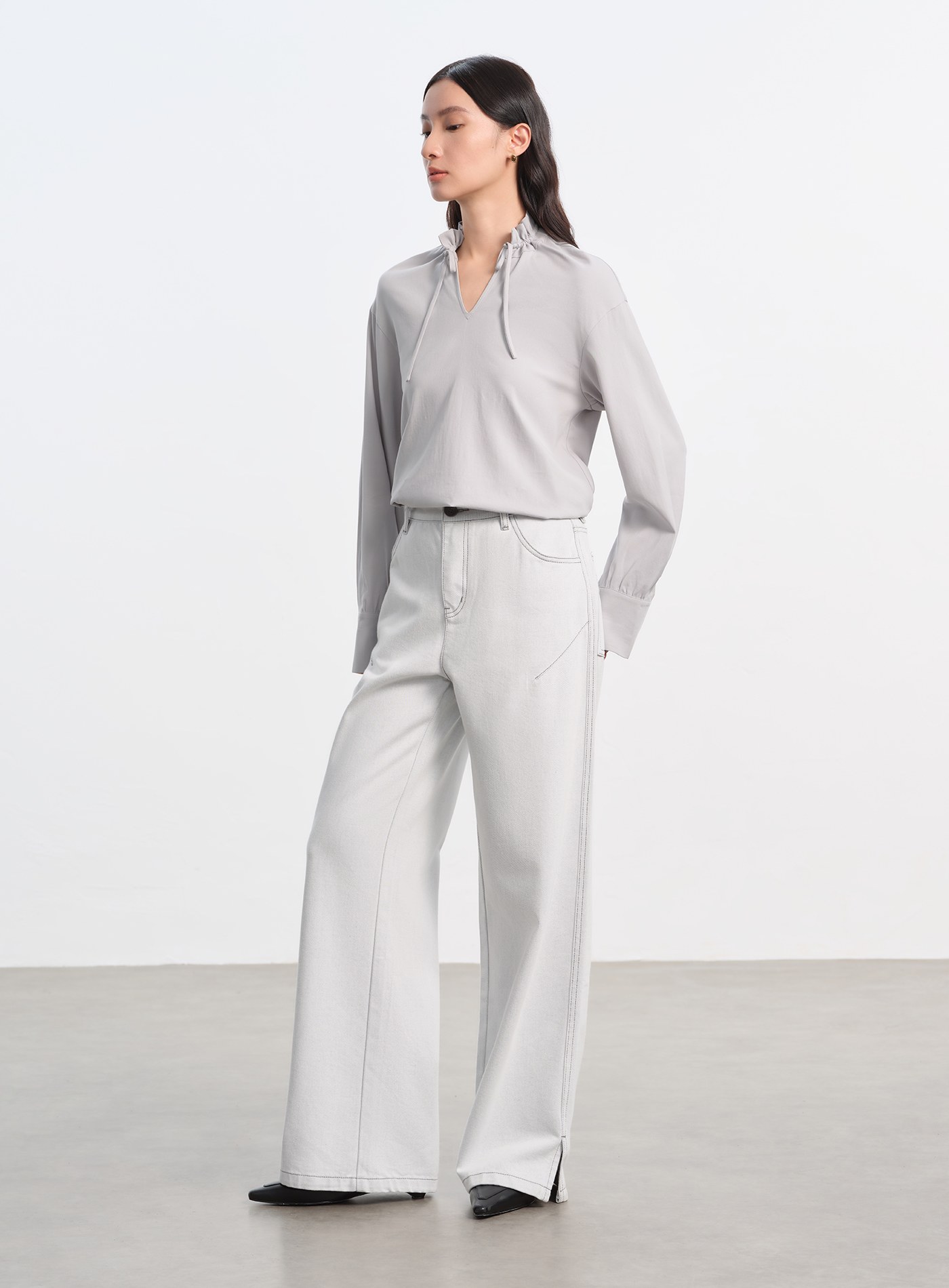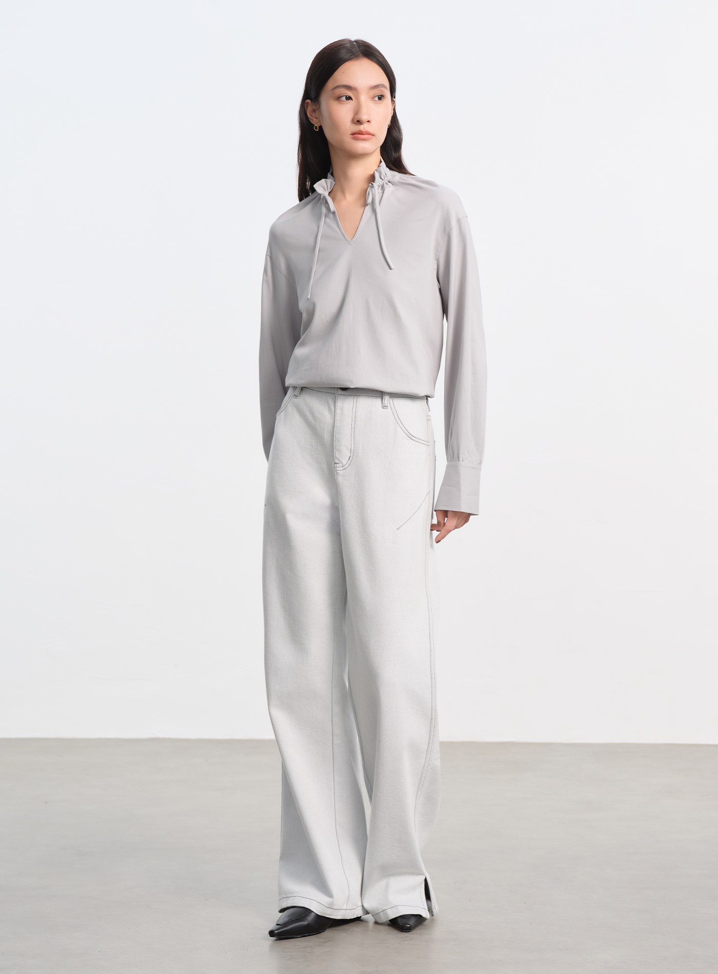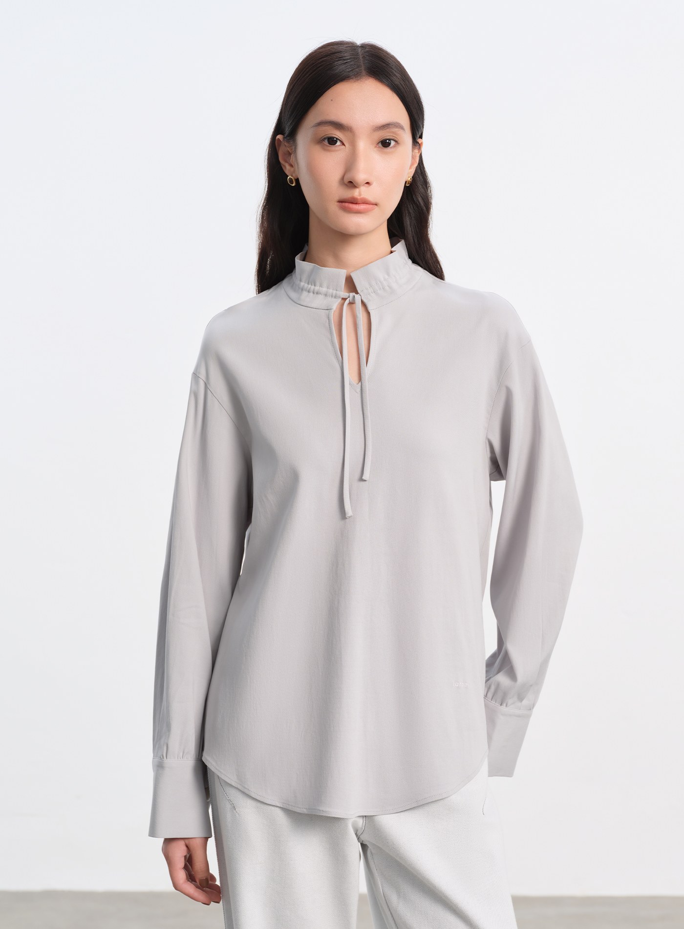 圓領壓褶休閒長袖上衣$47 USD
