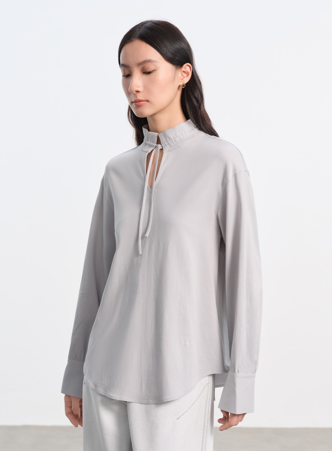 光澤感飄帶打摺襯衫$63 USD