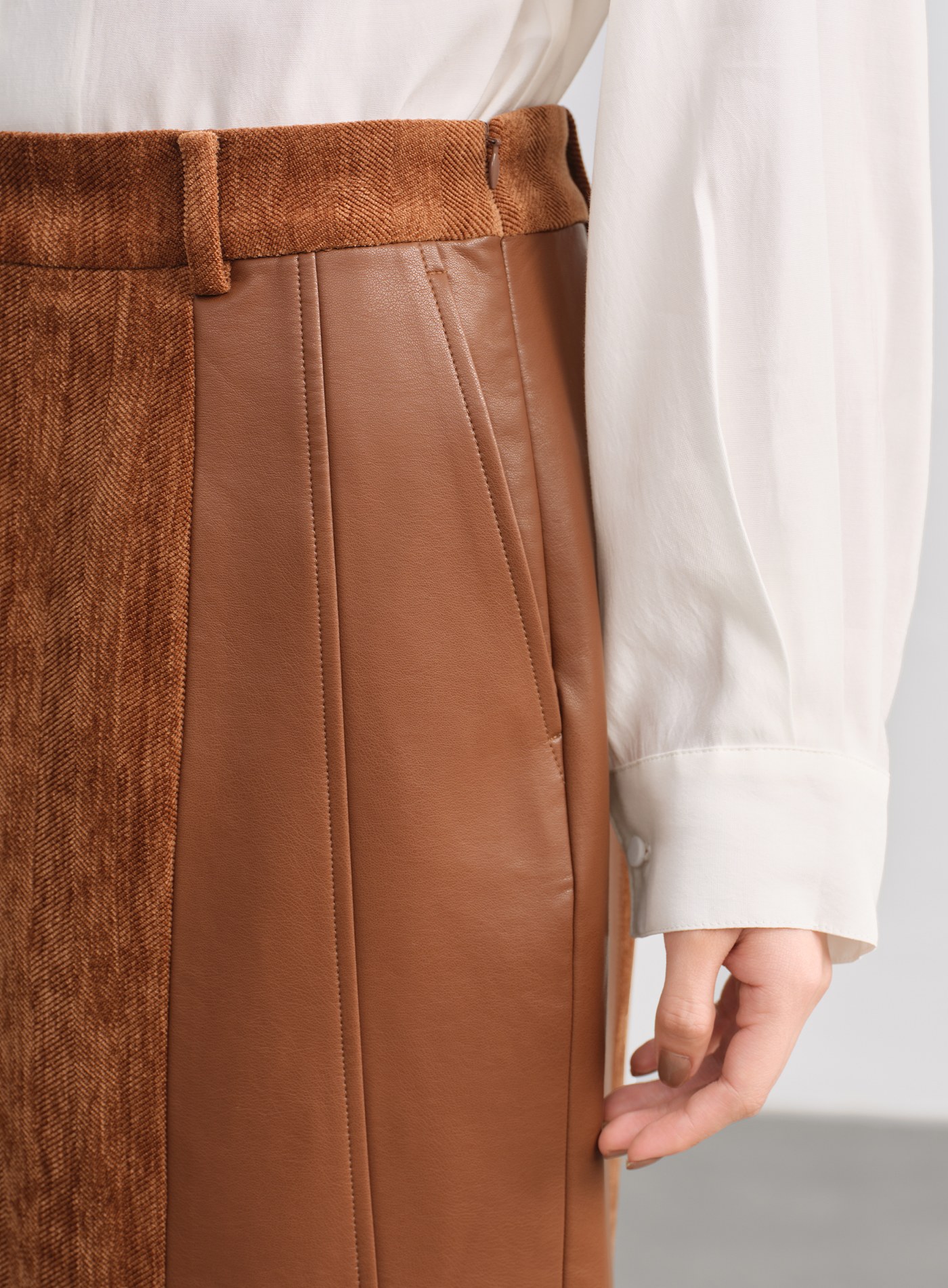 - 直身半身裙剪裁,裙身縱向分割線優化比例