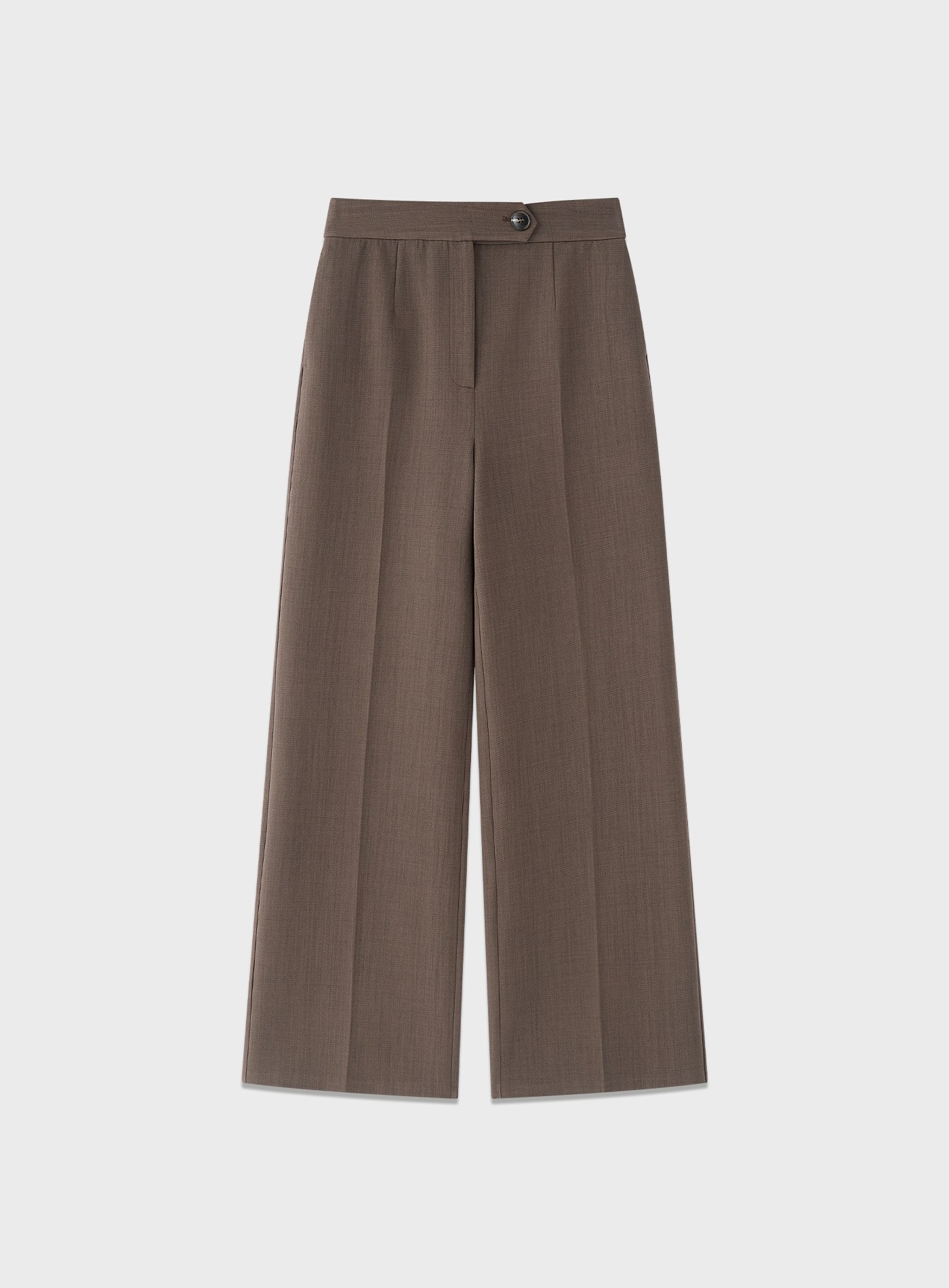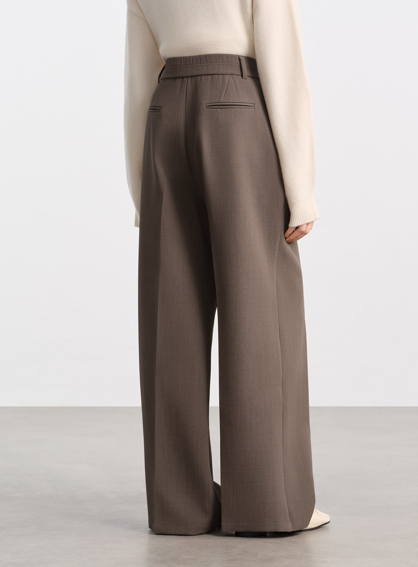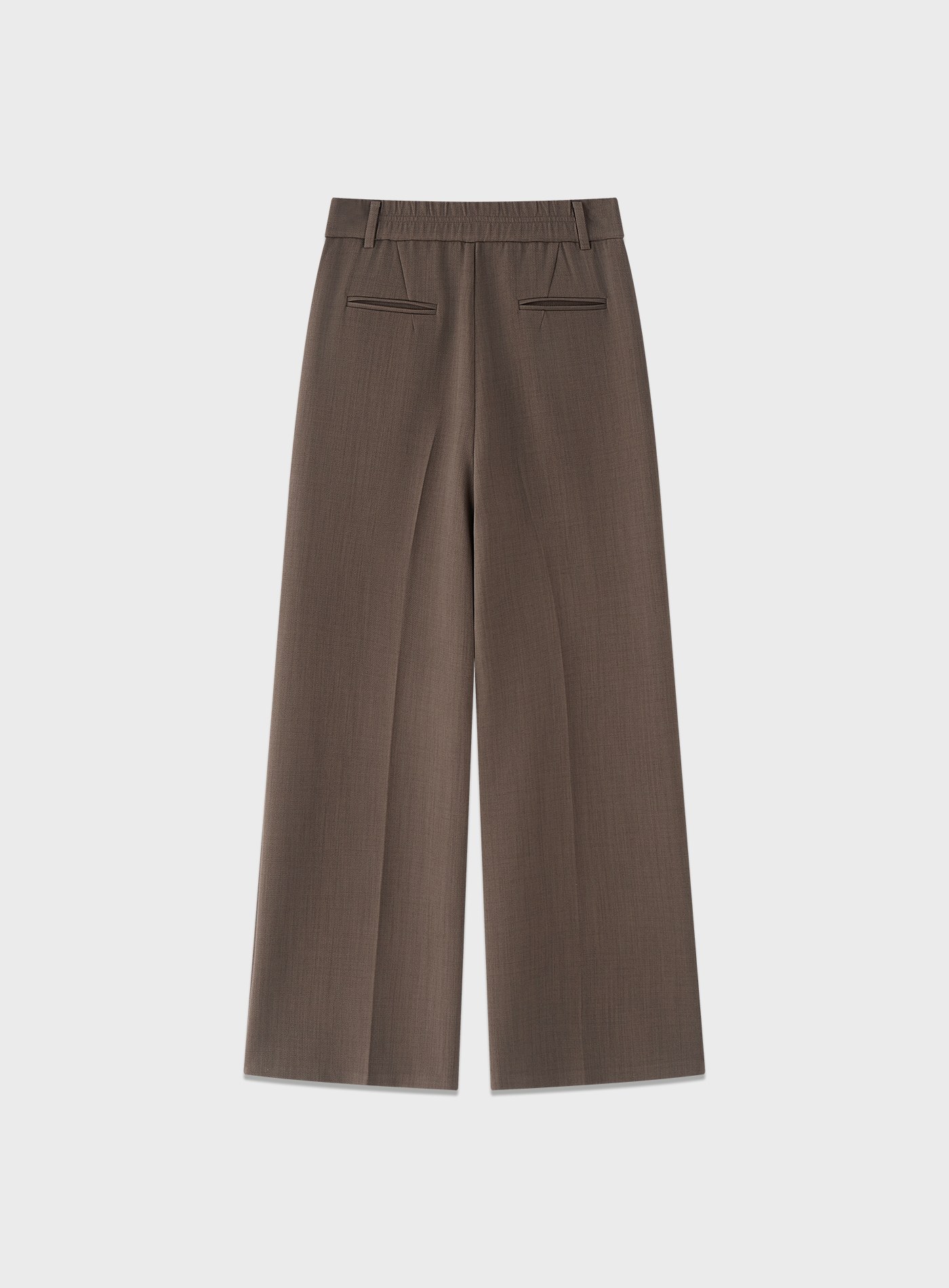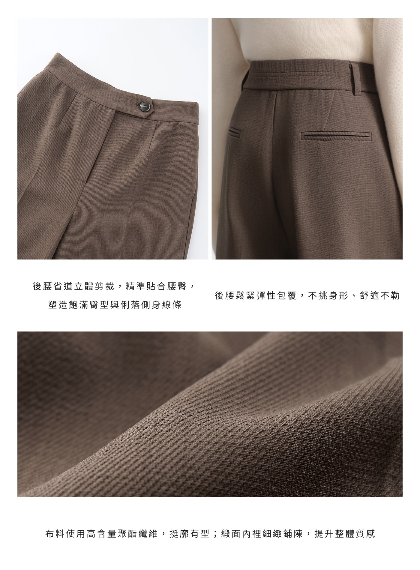 • 後腰加入彈性鬆緊設計,自在包容不同身形,高腰搭配寬褲線條,讓比例自然拉長