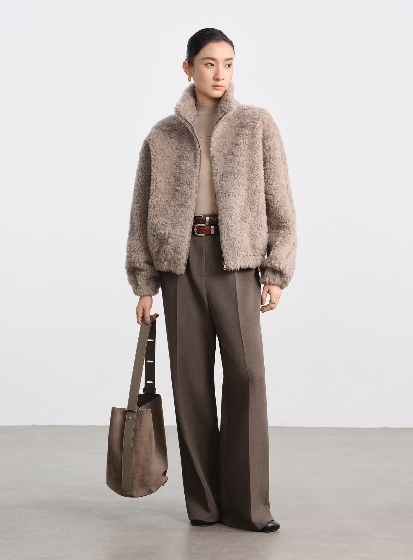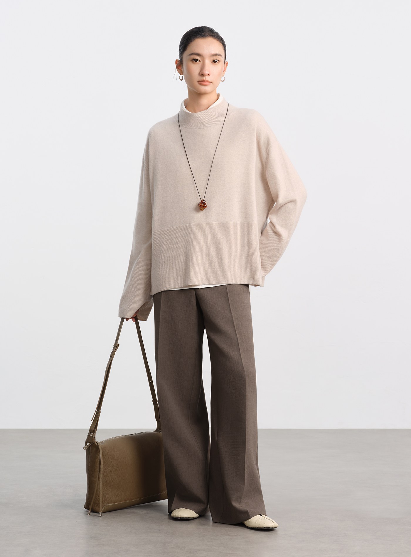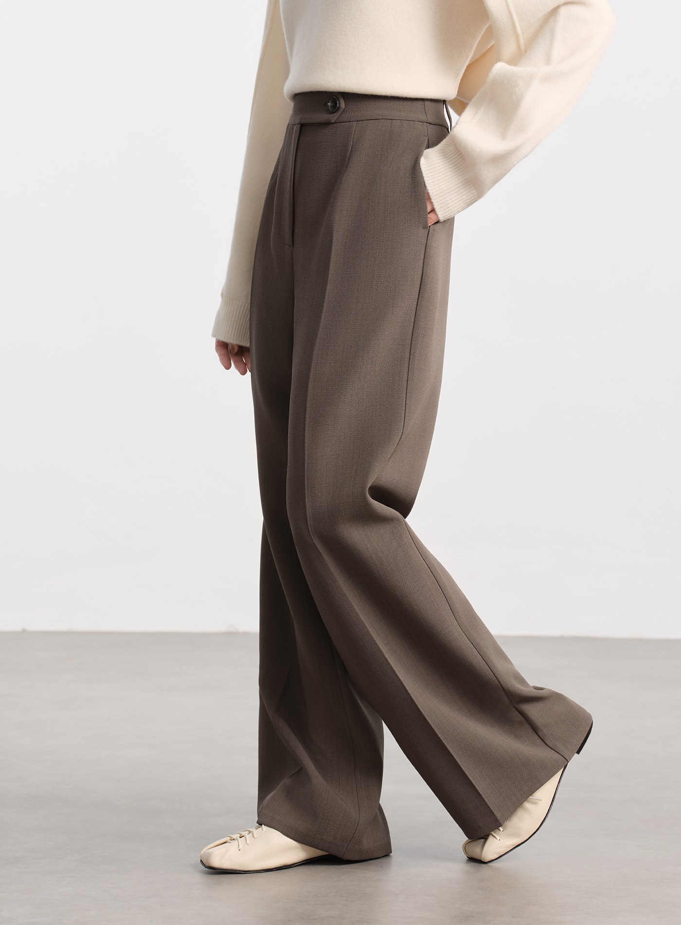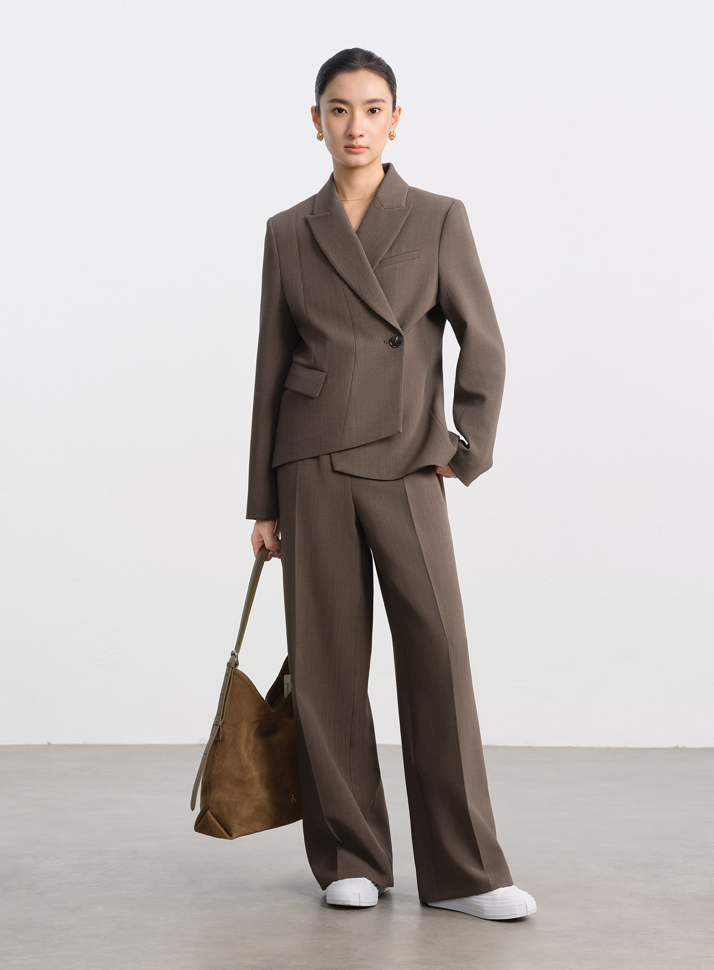 • 後腰加入彈性鬆緊設計,自在包容不同身形,高腰搭配寬褲線條,讓比例自然拉長