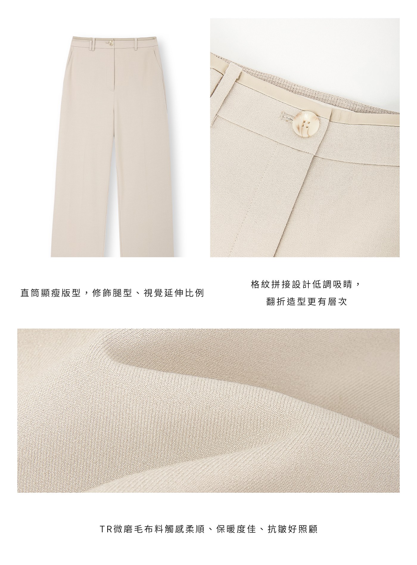 • 俐落直筒線條,視覺自然拉長比例,把腿型修飾得乾淨又筆直