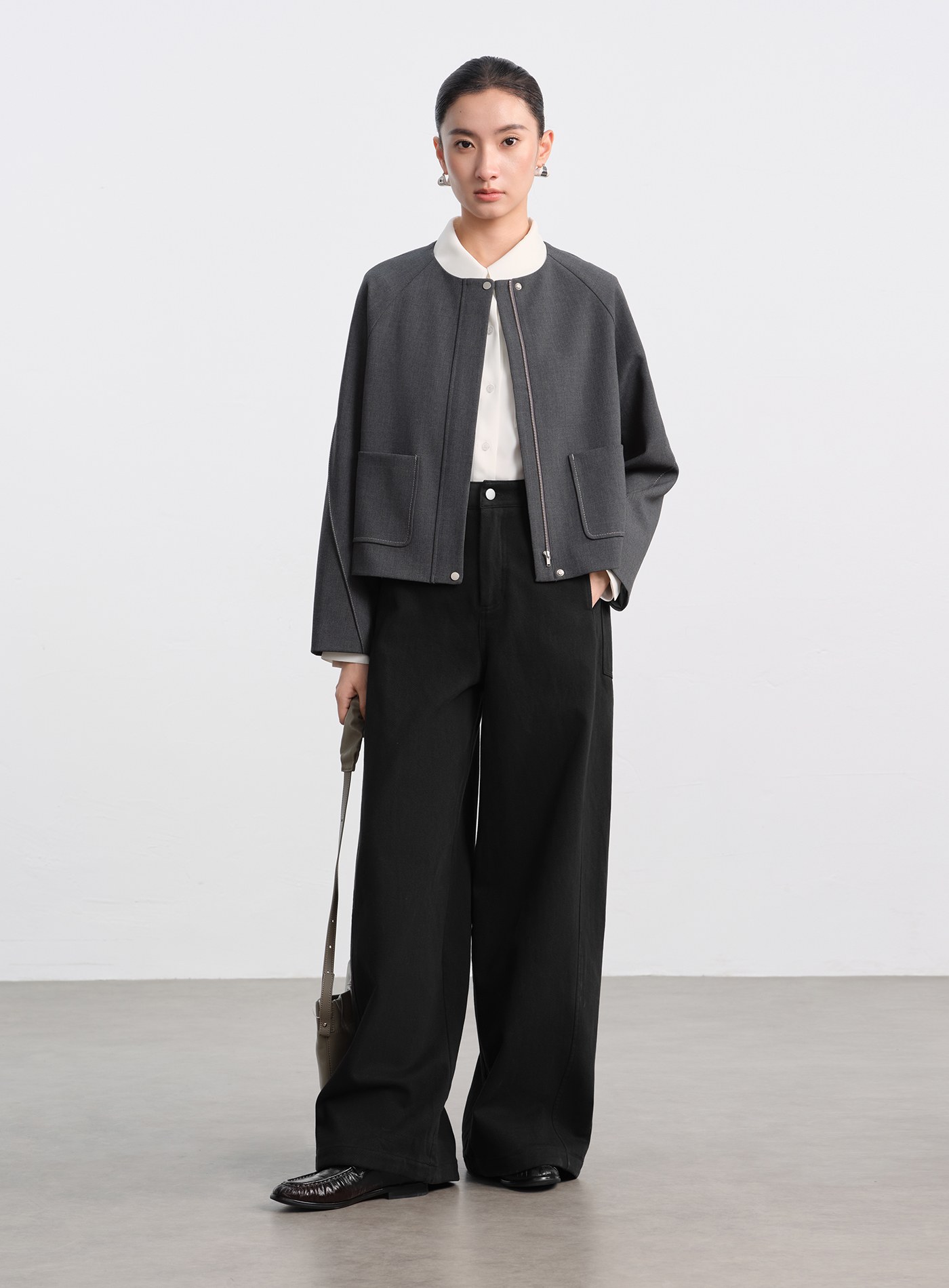 - 外層選用 100% 棉質面料,保有俐落挺度與乾淨線條,外觀俐落不拖沓