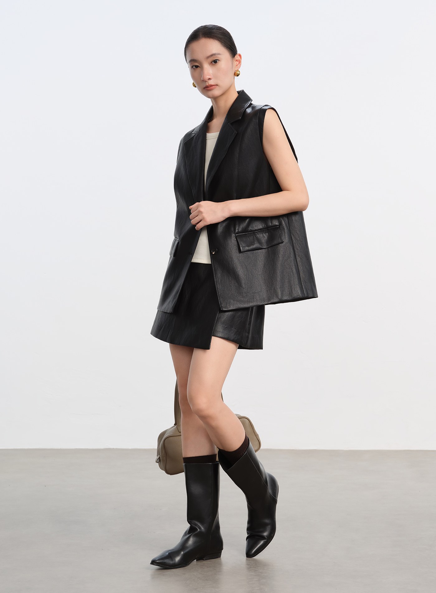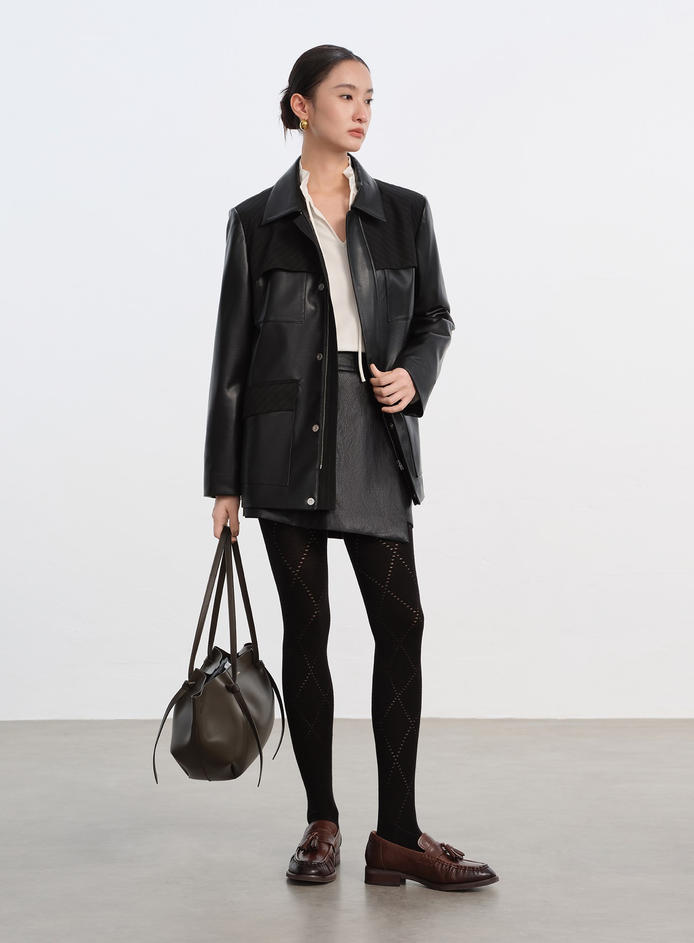 - 人造皮革防水耐磨,穿著立體挺括不易皺