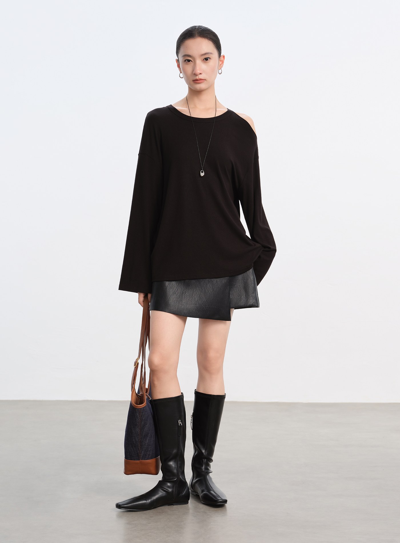 - 一片式褲裙設計,不對稱裙片增加造型感