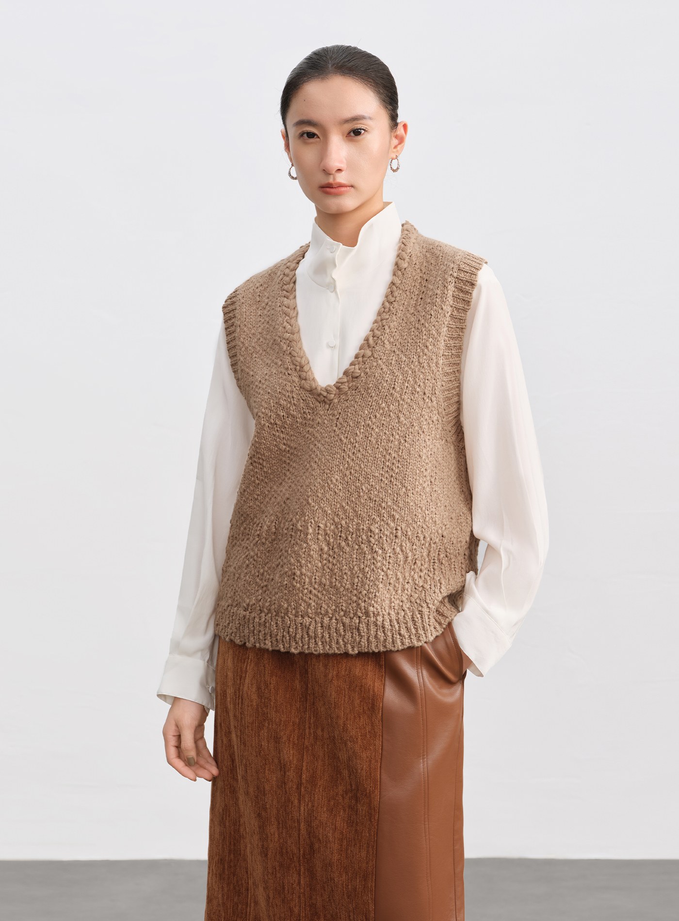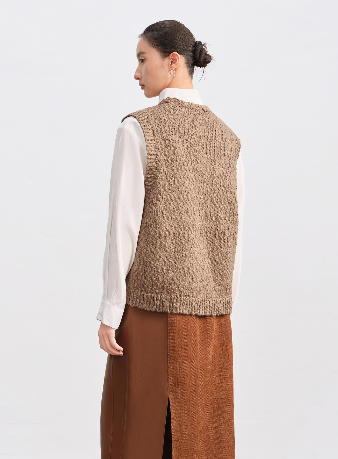 - 俐落 V 領修飾頸部線條;無袖版型讓穿著更自由