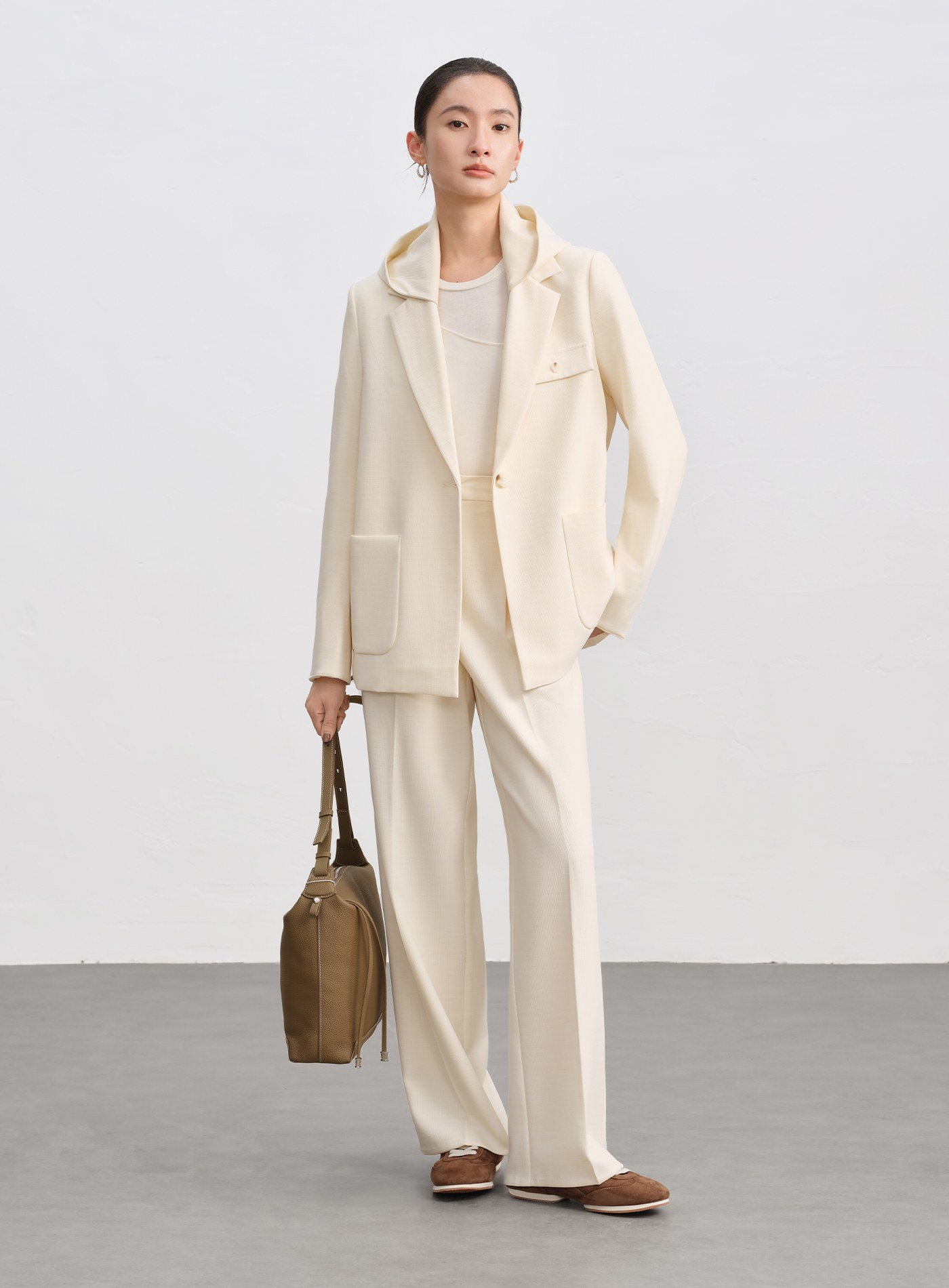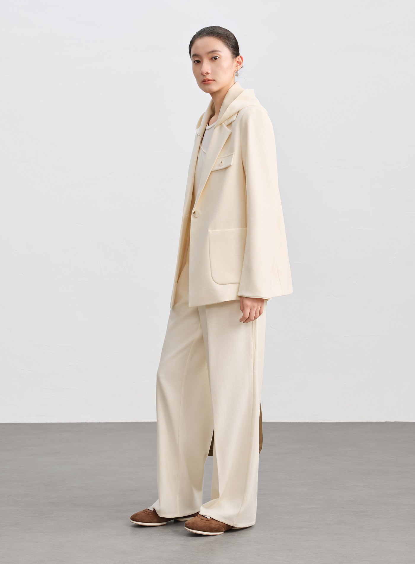 - 可與 '側身拼接西裝寬褲' 搭成一套