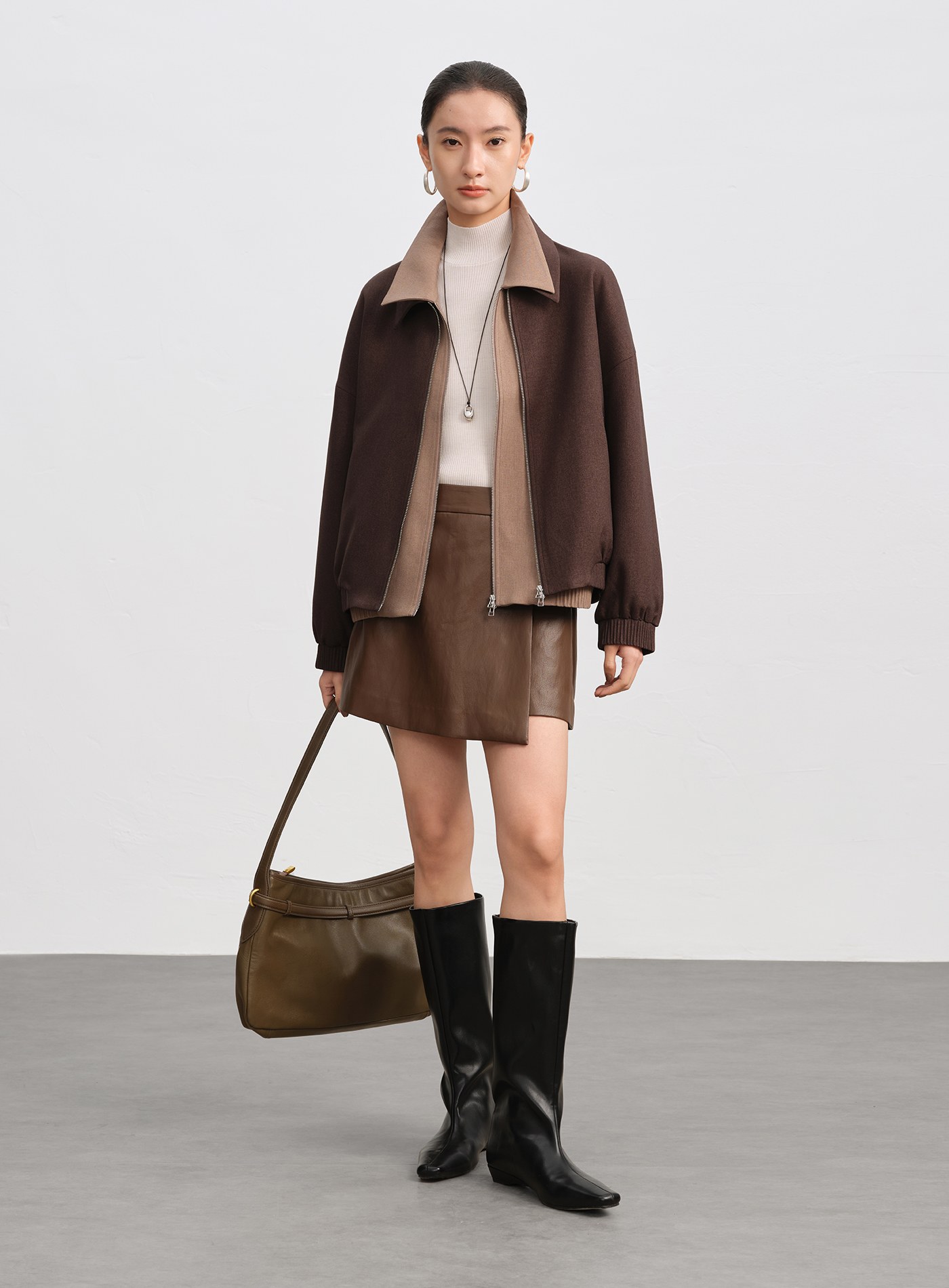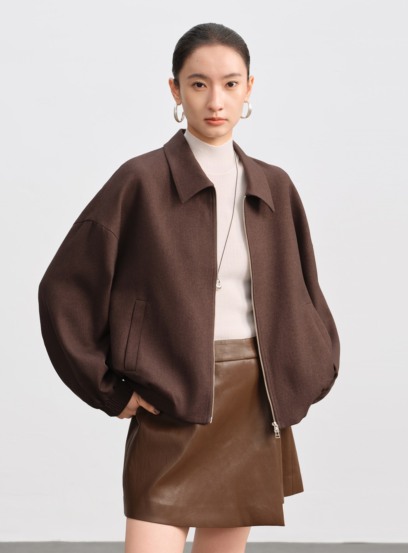 - 訂製雙向順滑金屬拉鍊,與布料同色霧面處理