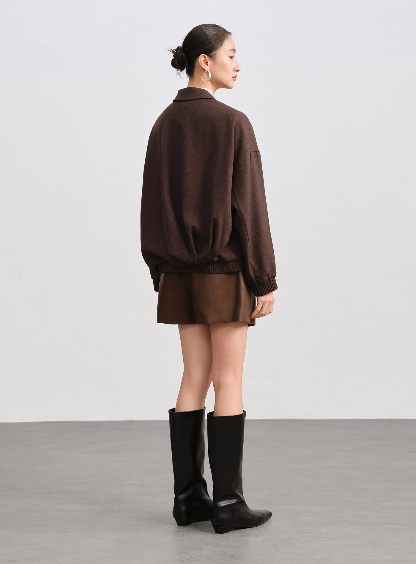 - 後身下擺造型感大褶量壓褶