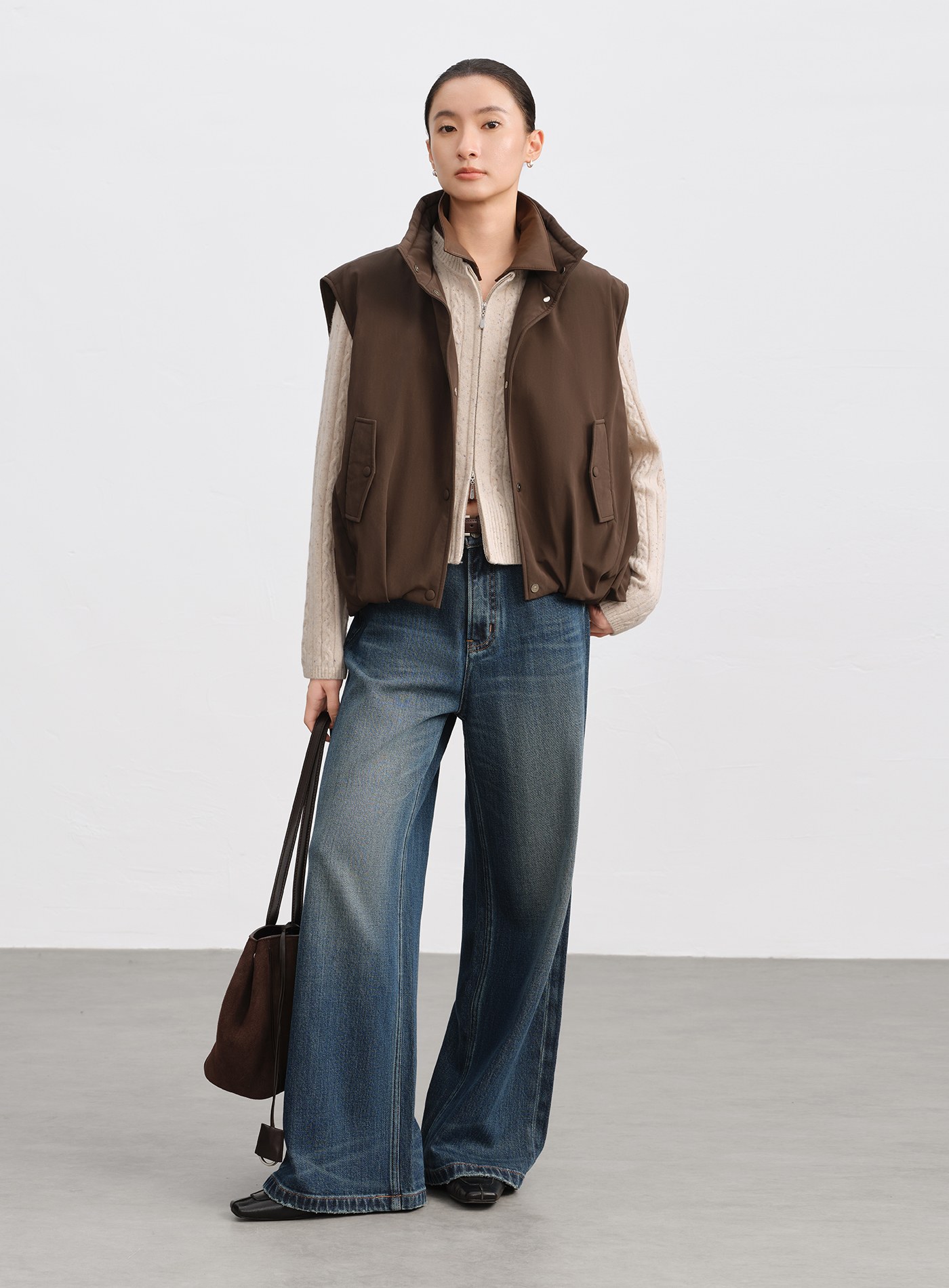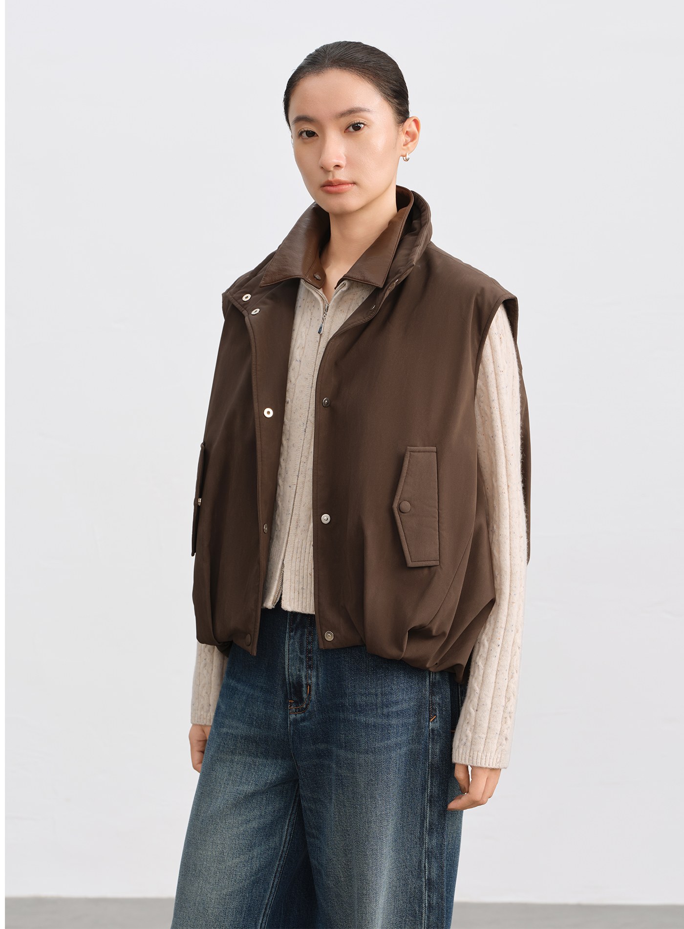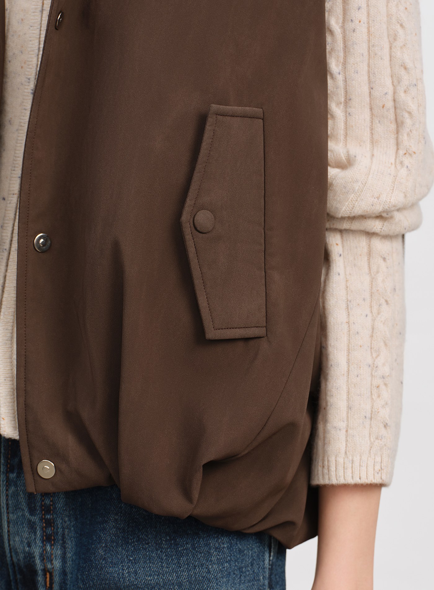 羊毛雙面呢圓領不對稱拼接大衣$191 USD