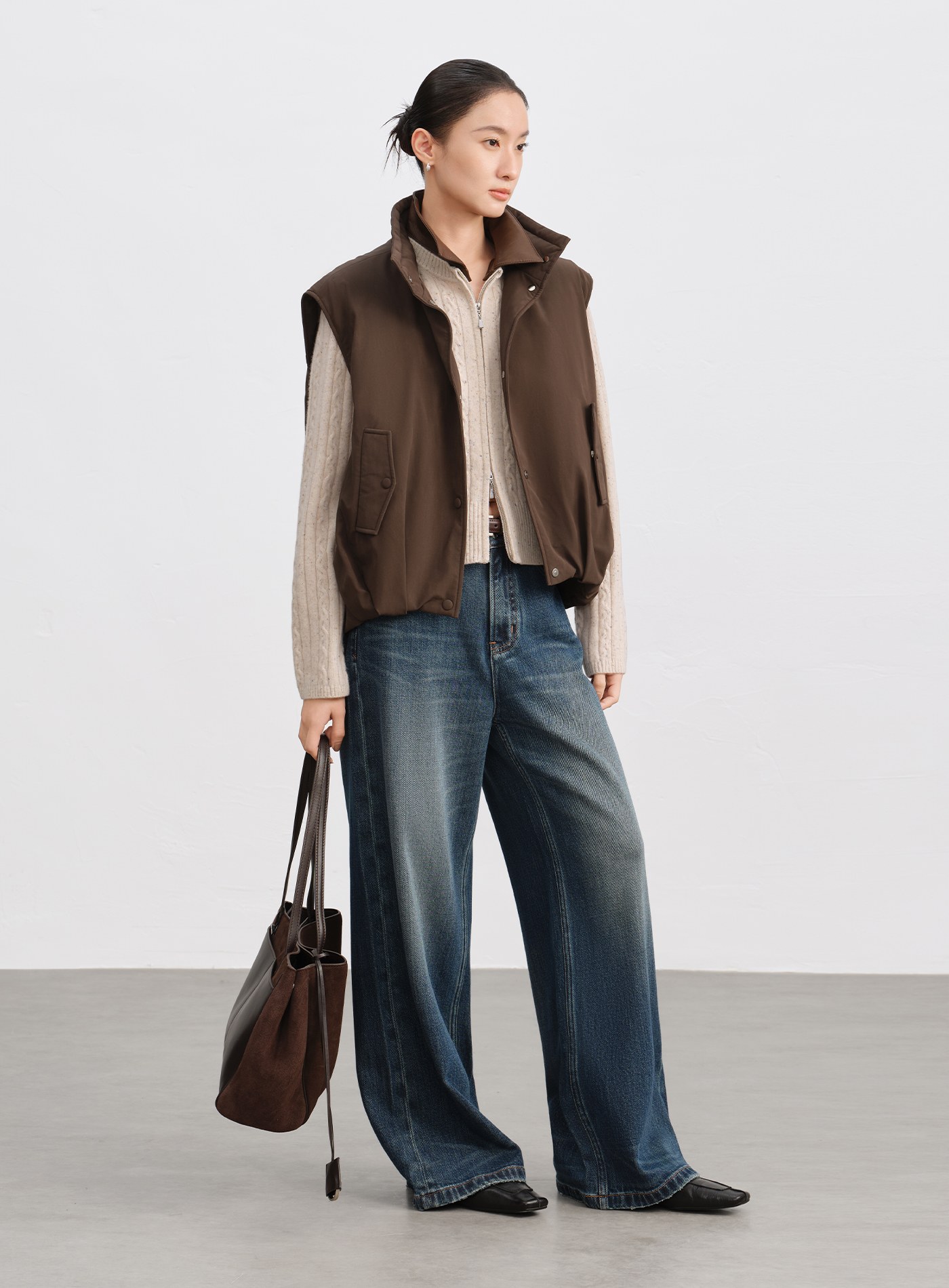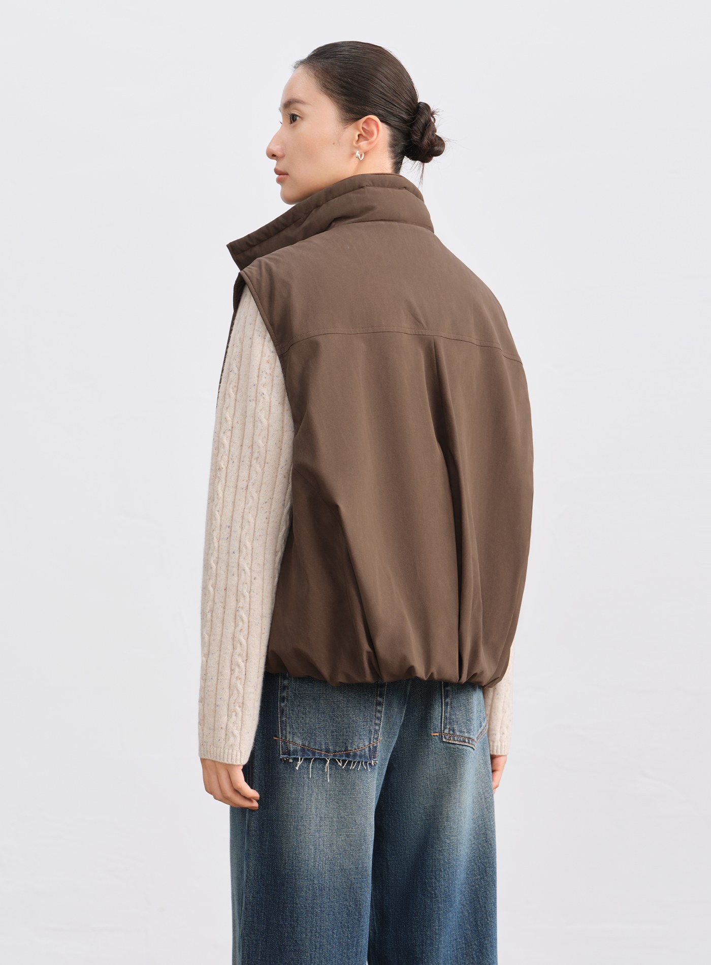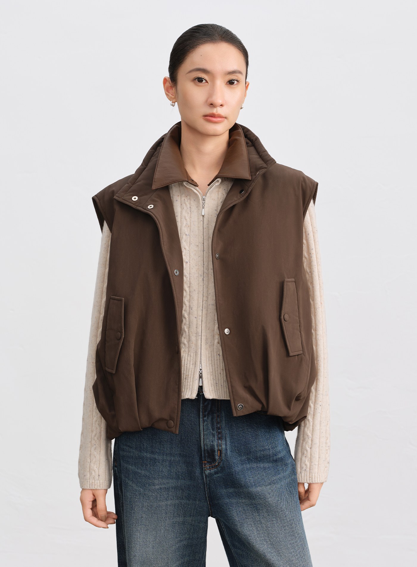羊毛雙面呢圓領不對稱拼接大衣$191 USD