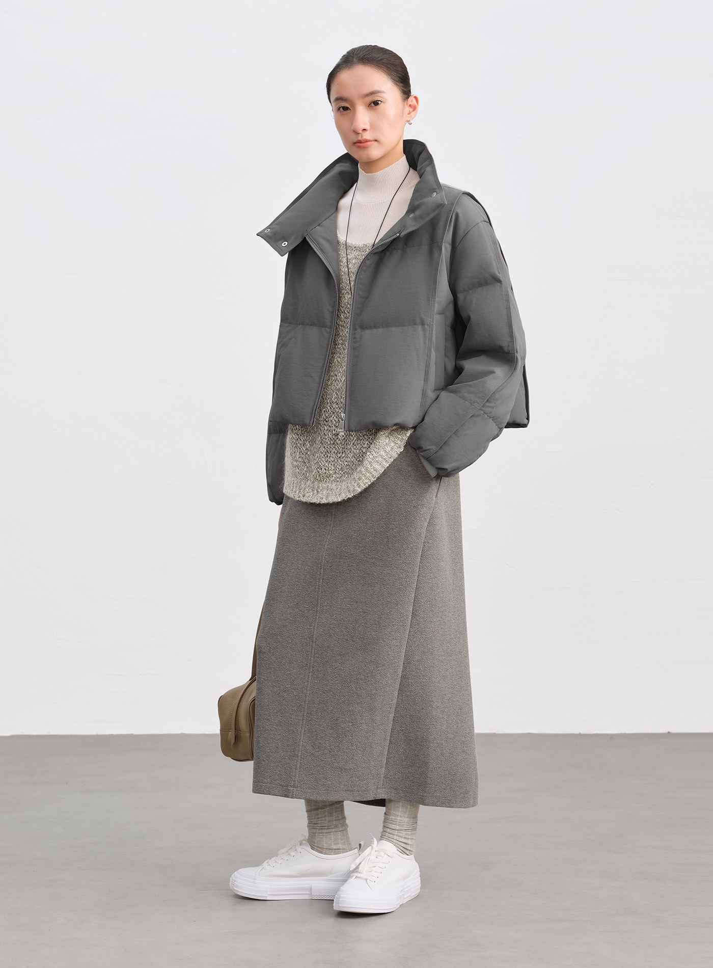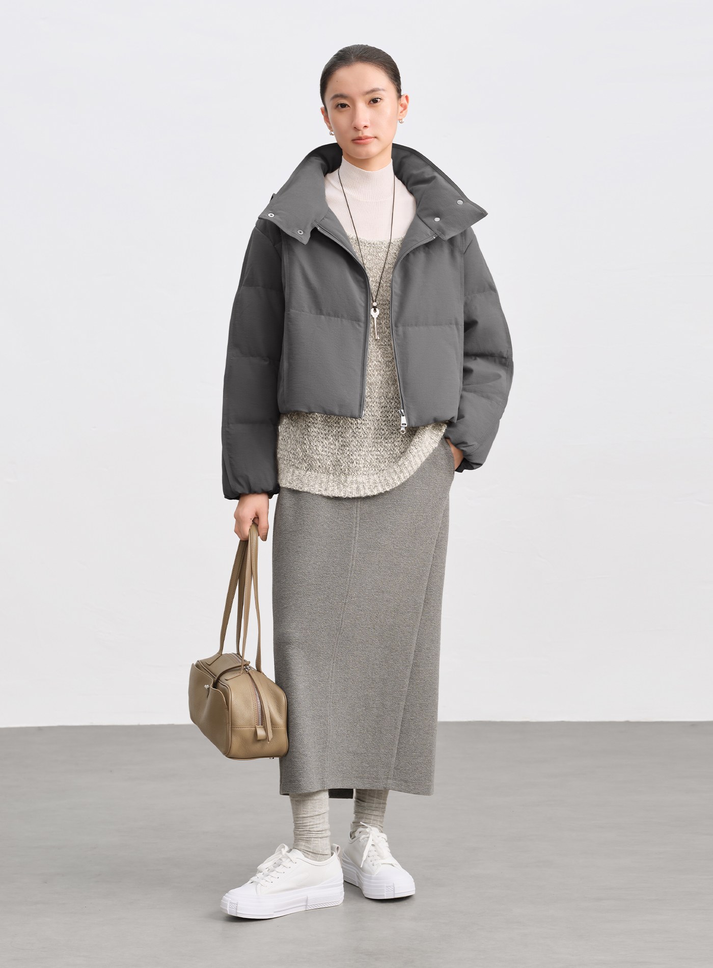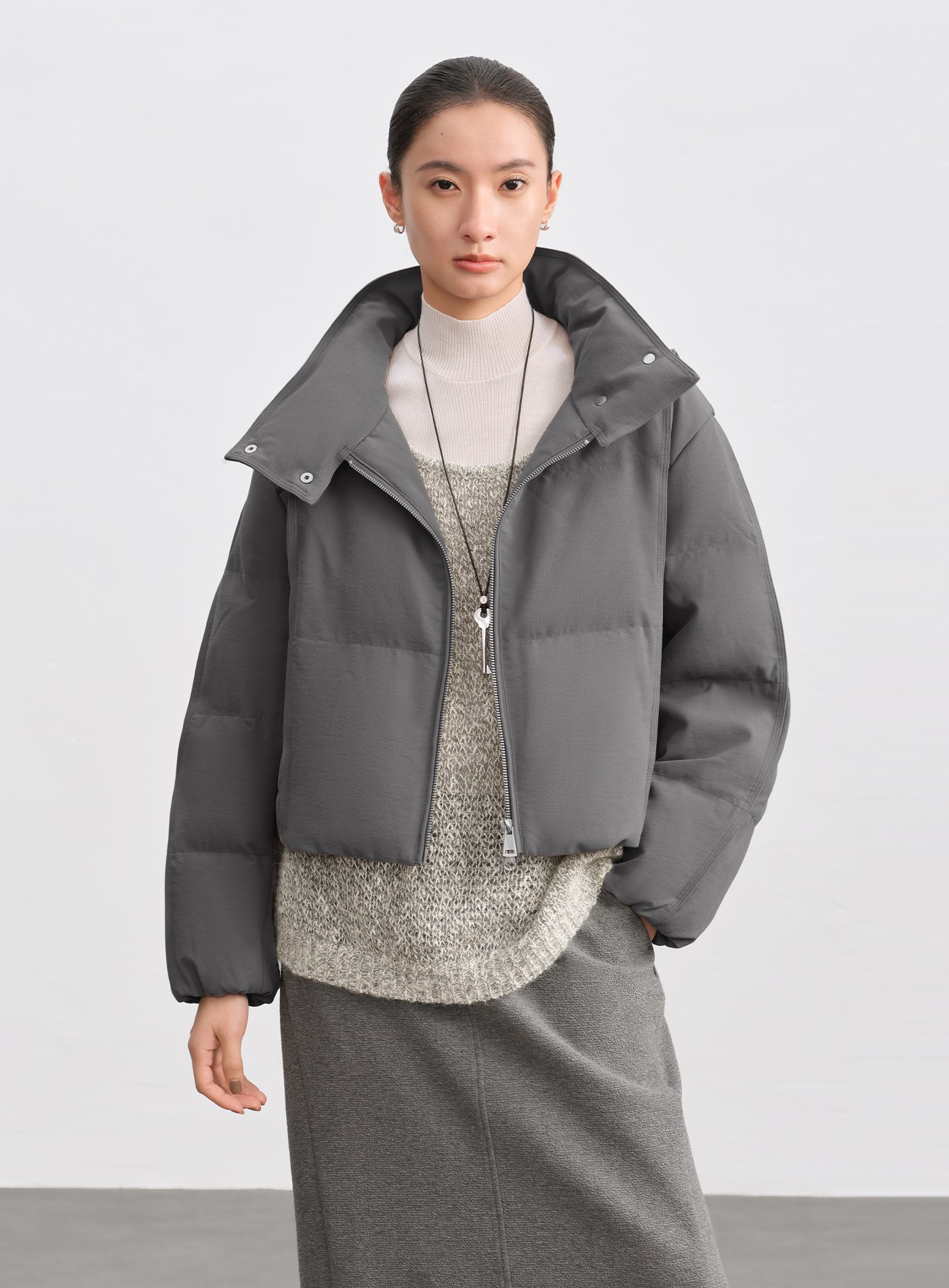 - 立領搭配H型箱型線條,打造簡潔俐落的輪廓