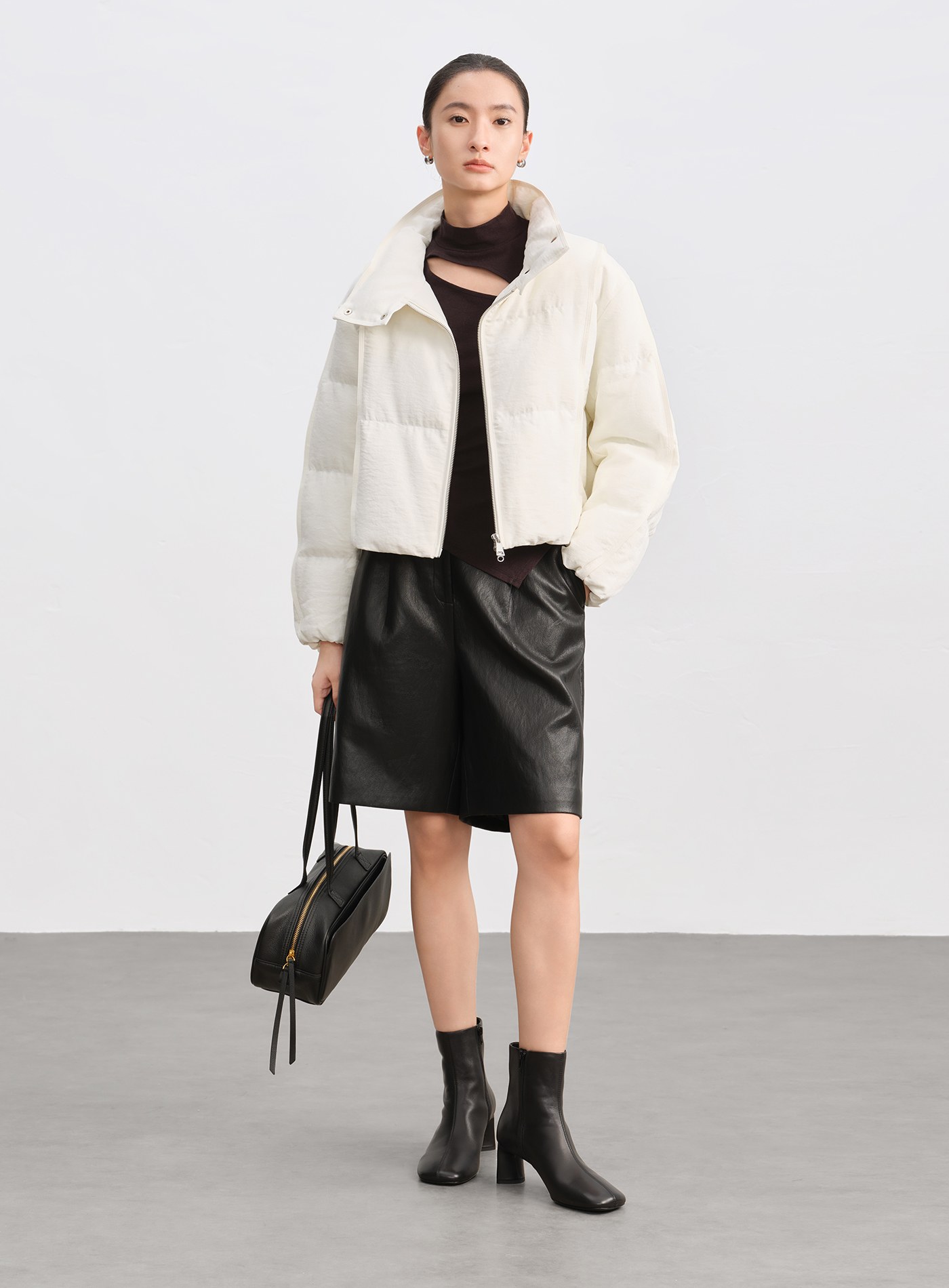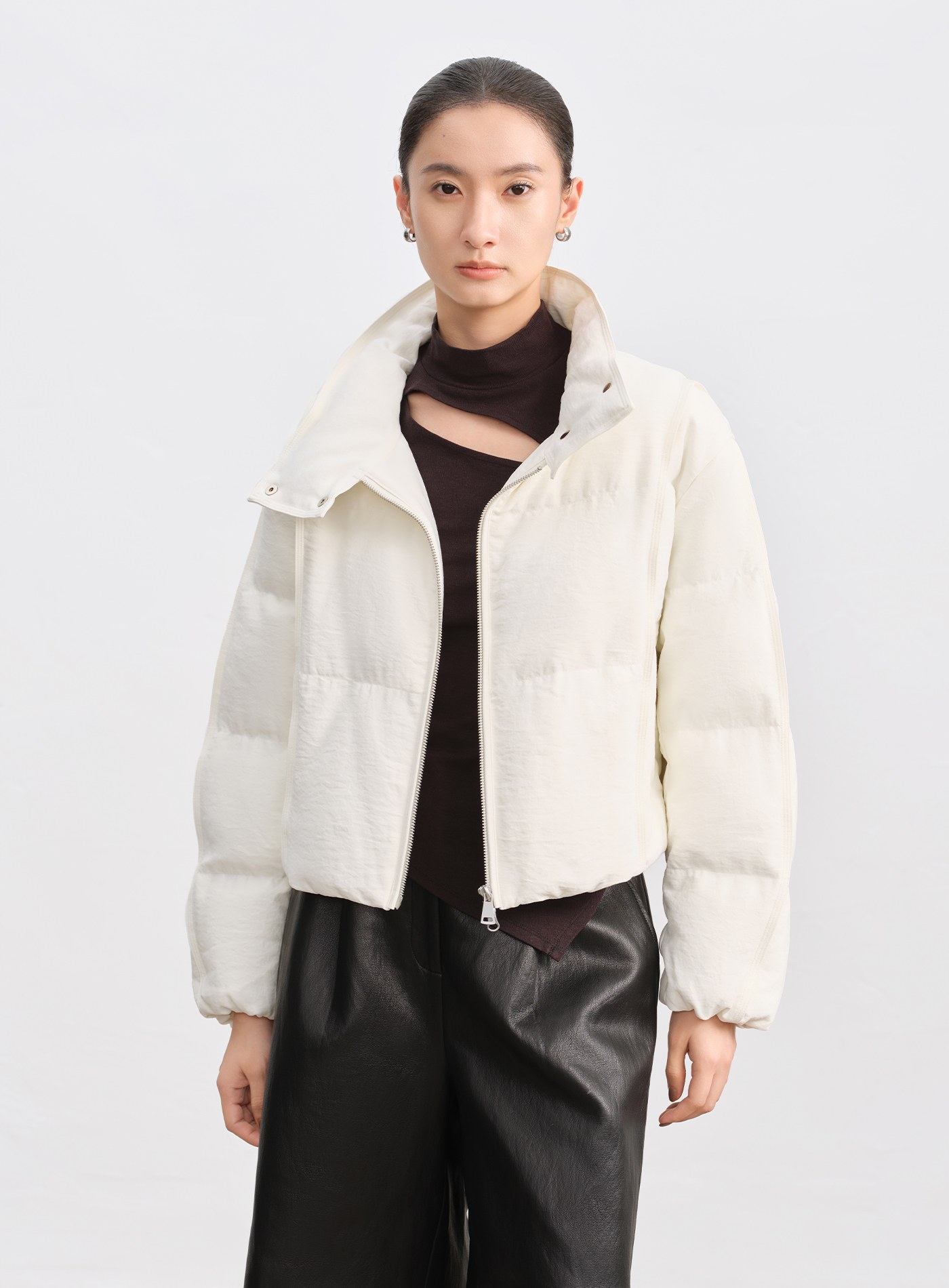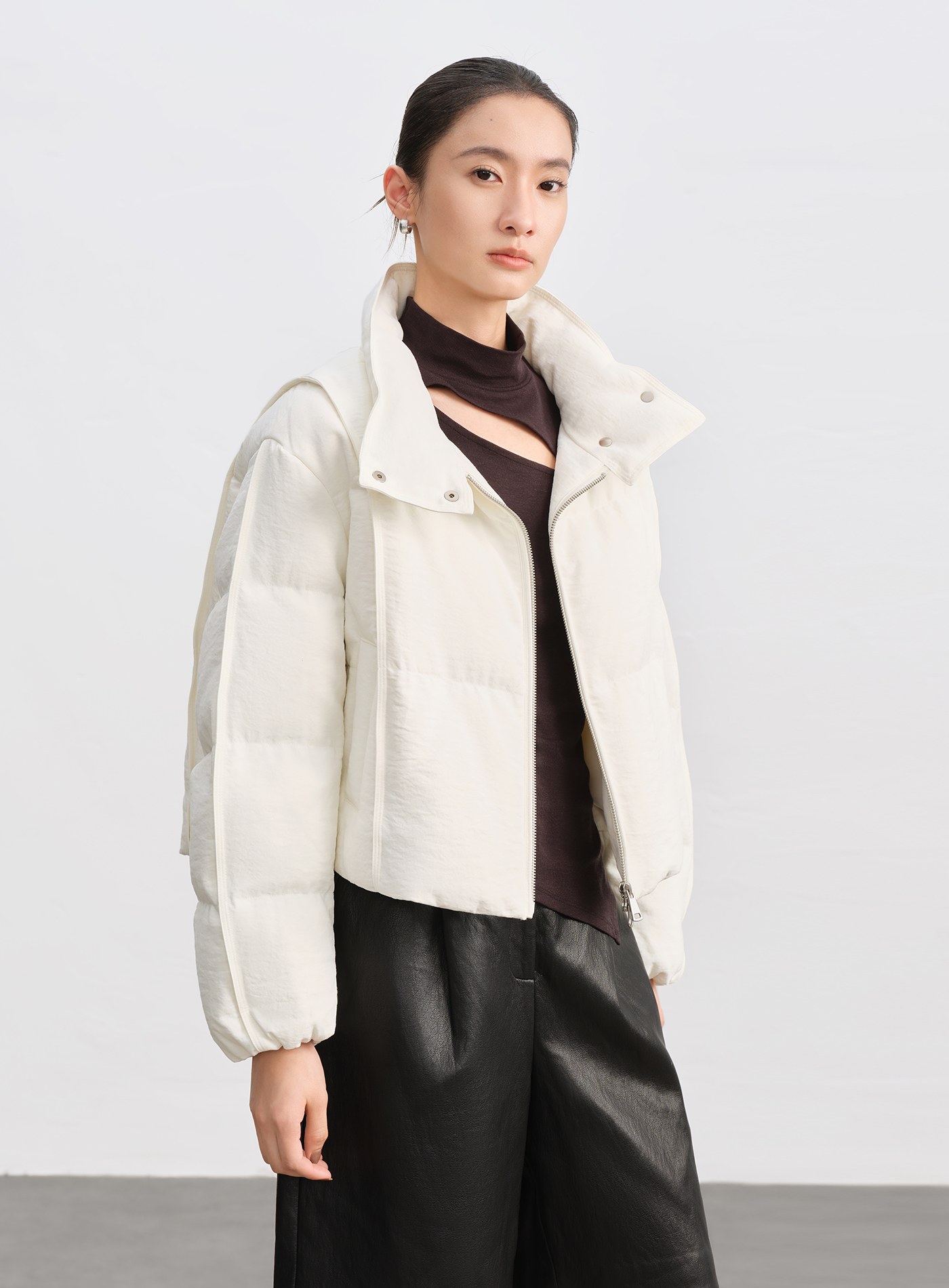 - 立領搭配H型箱型線條,打造簡潔俐落的輪廓