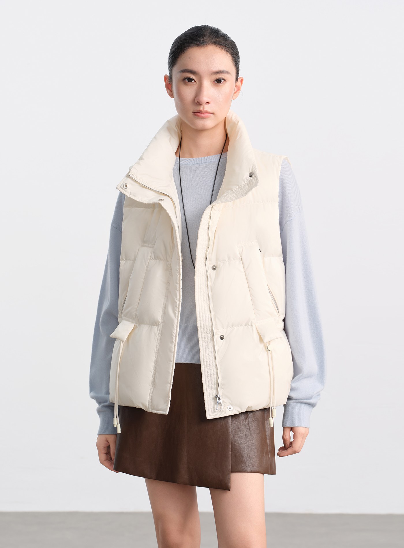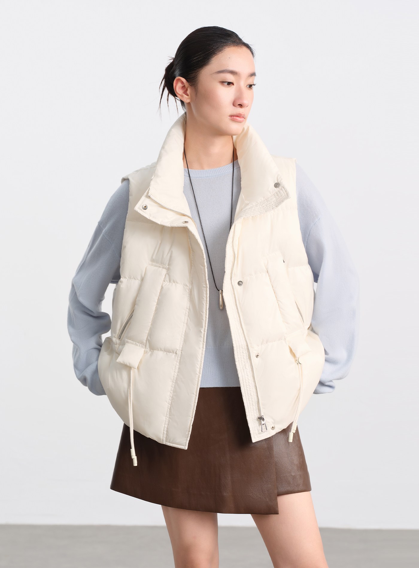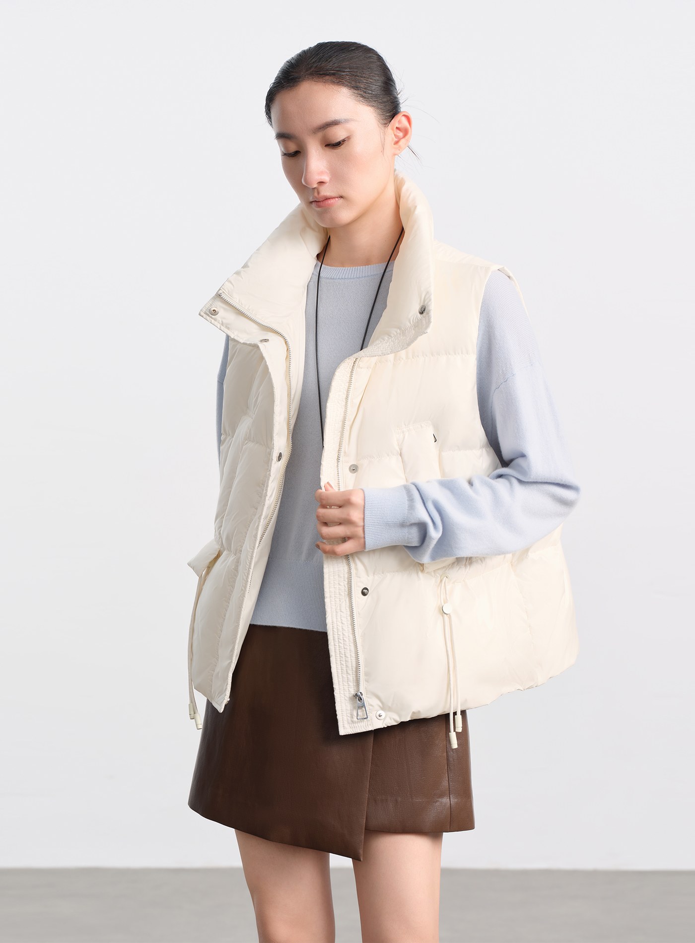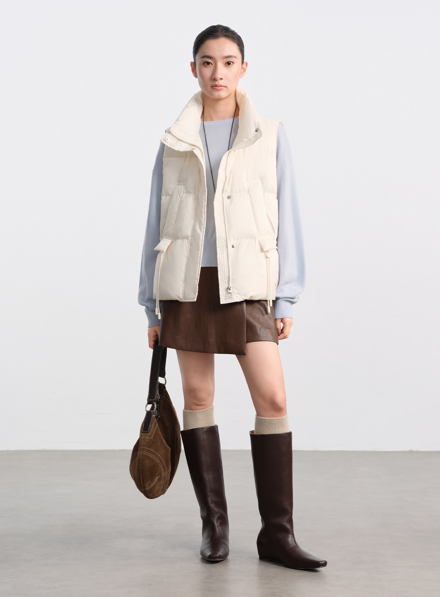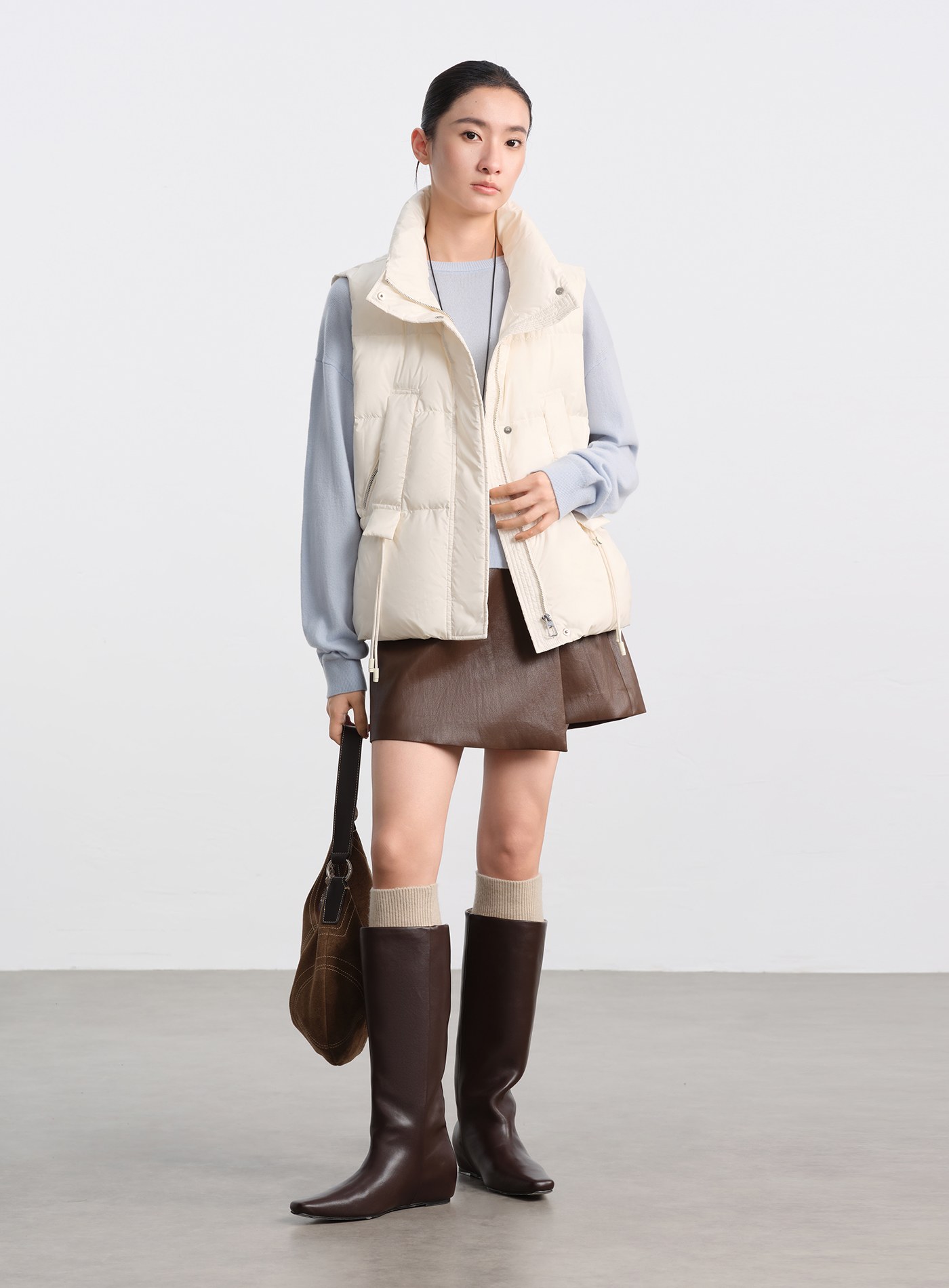羊毛雙面呢圓領不對稱拼接大衣$191 USD