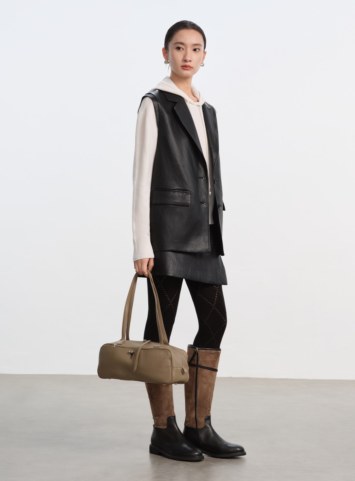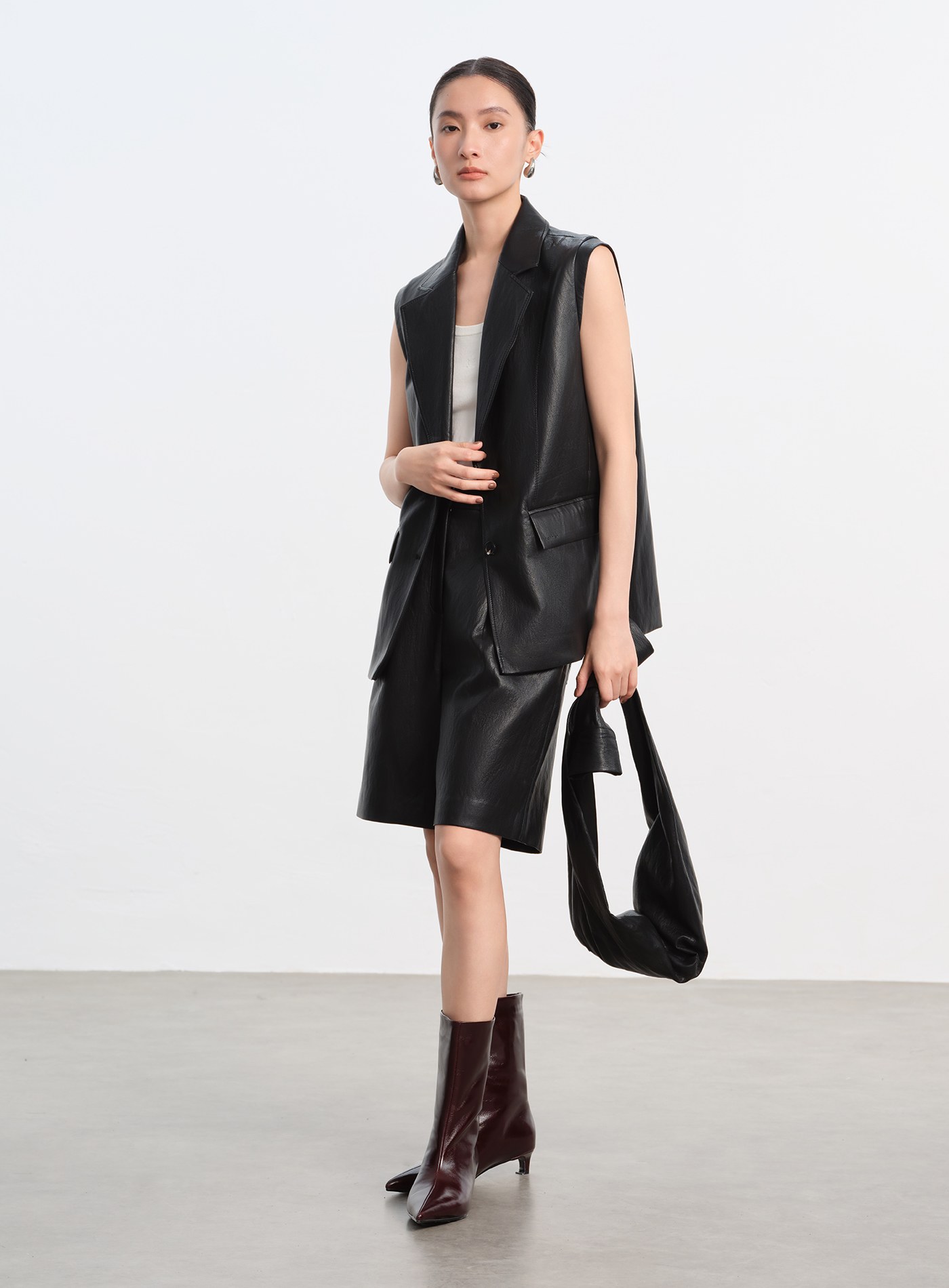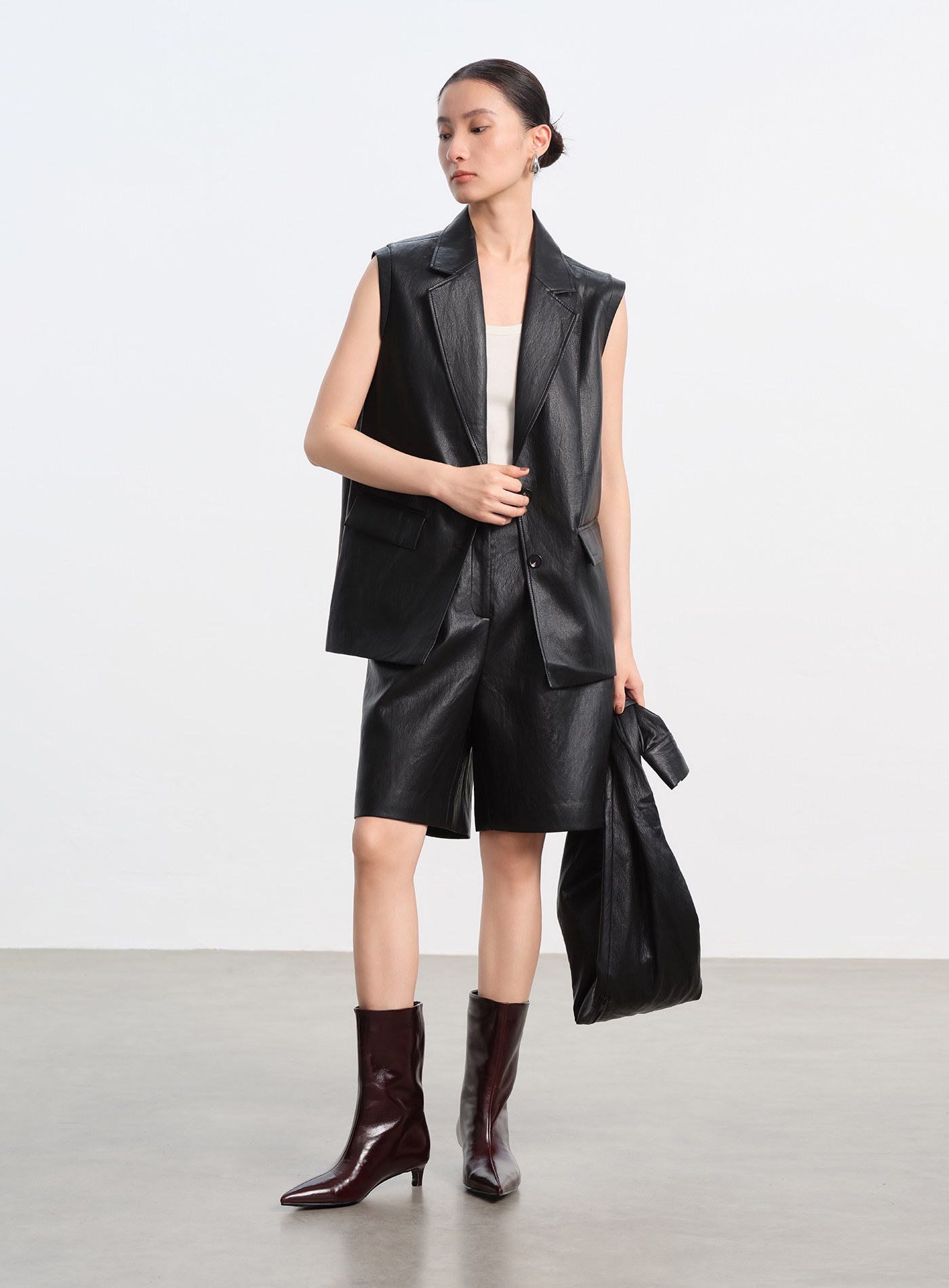 - 人造皮革防水耐磨,穿著立體挺括不易皺