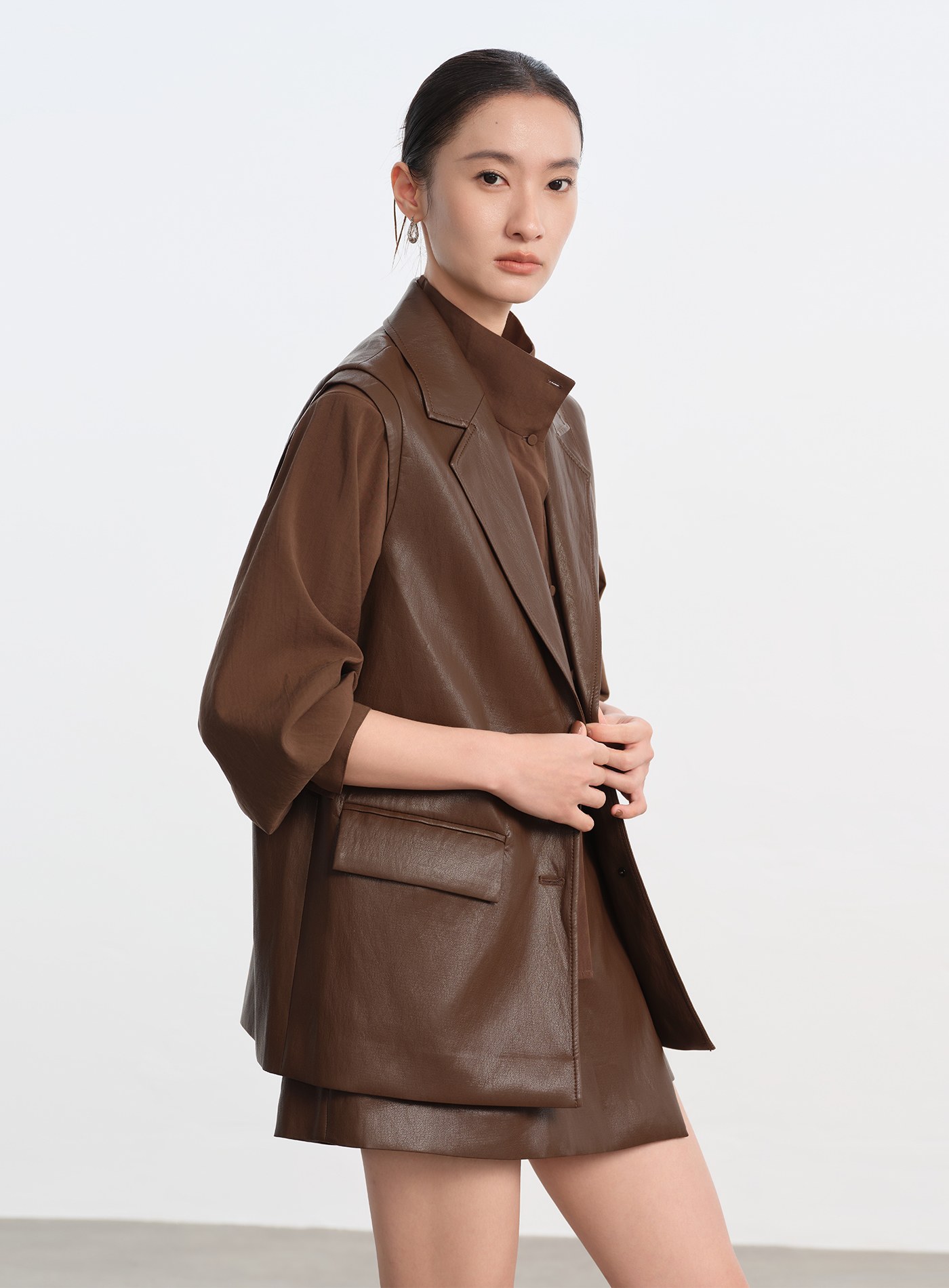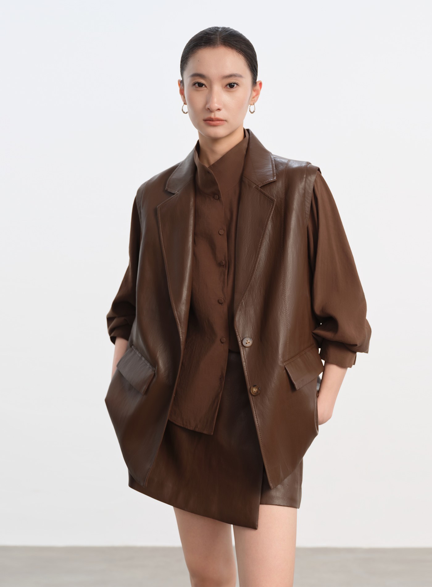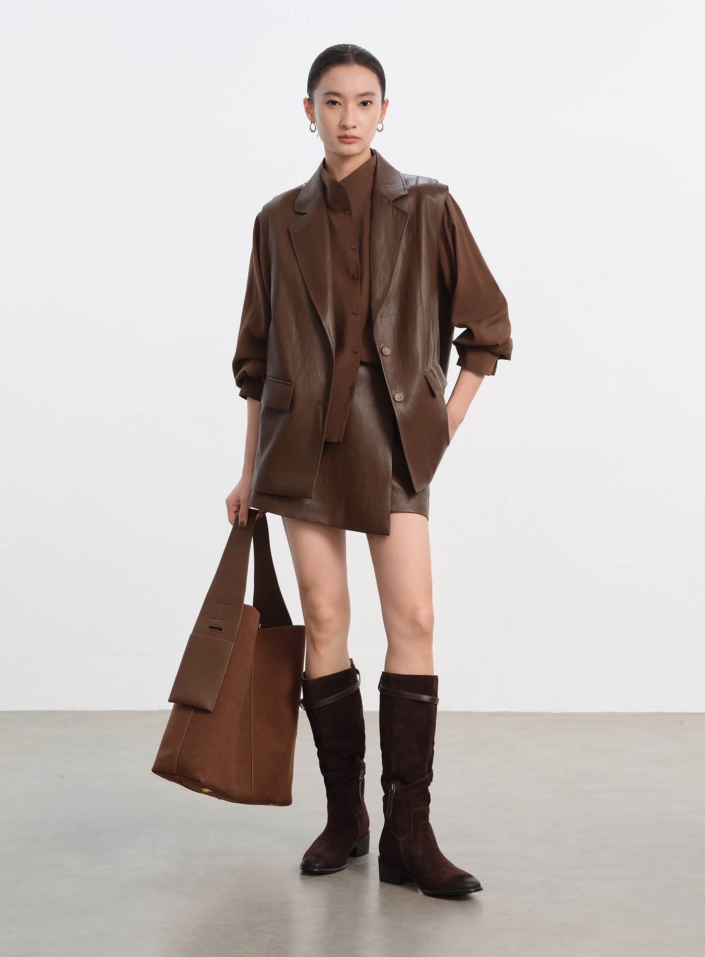 - 人造皮革防水耐磨,穿著立體挺括不易皺