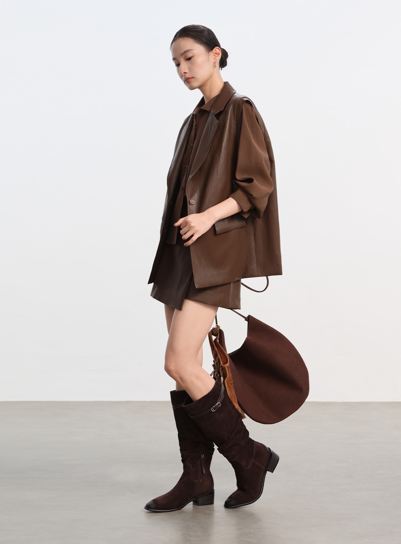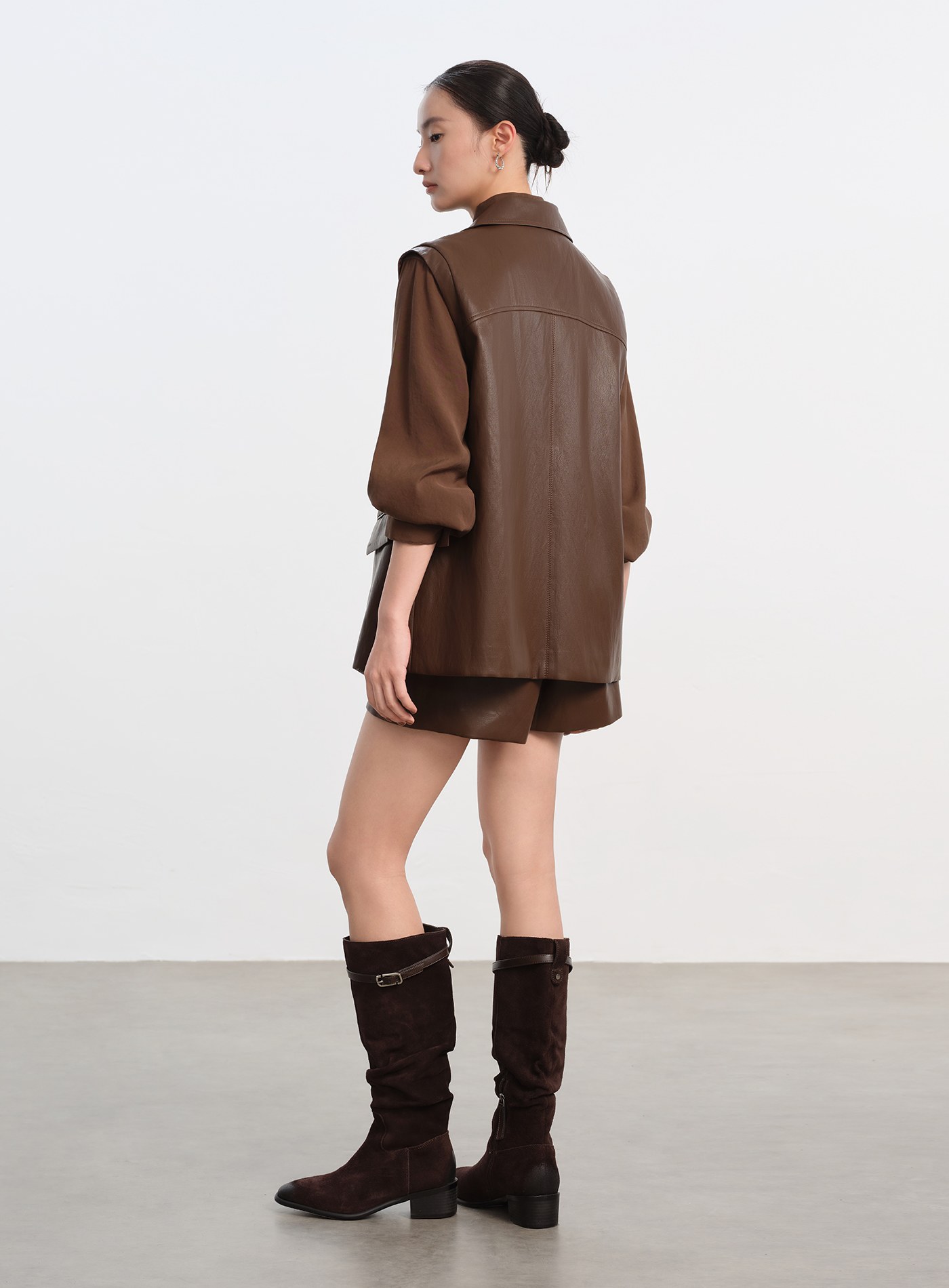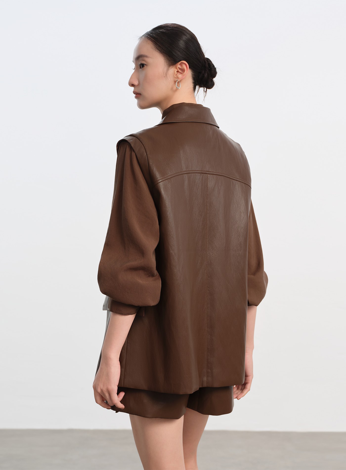 - 人造皮革防水耐磨,穿著立體挺括不易皺