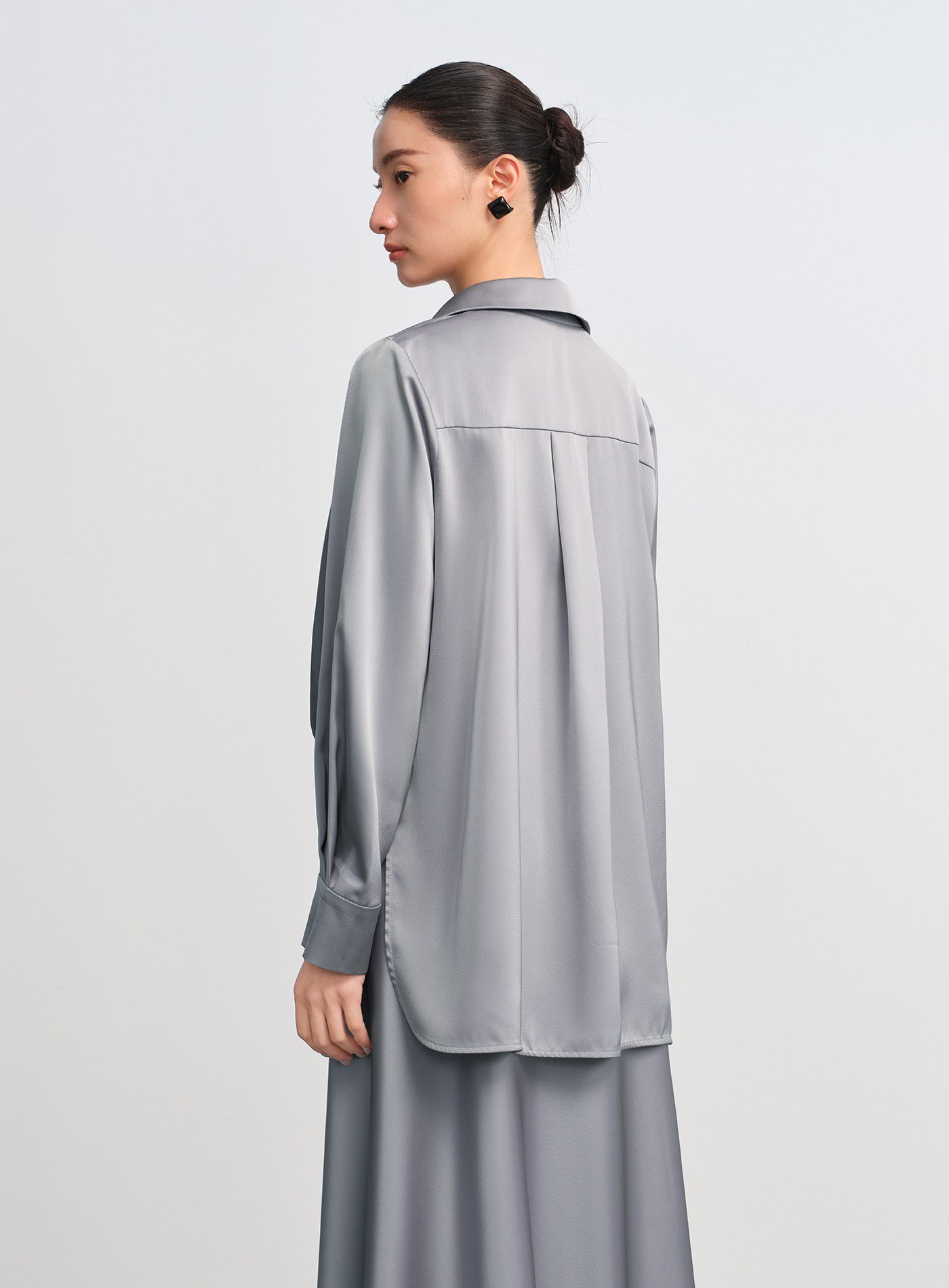 - 絲滑緞面材質在光線下散發柔和光澤,觸感輕盈舒適