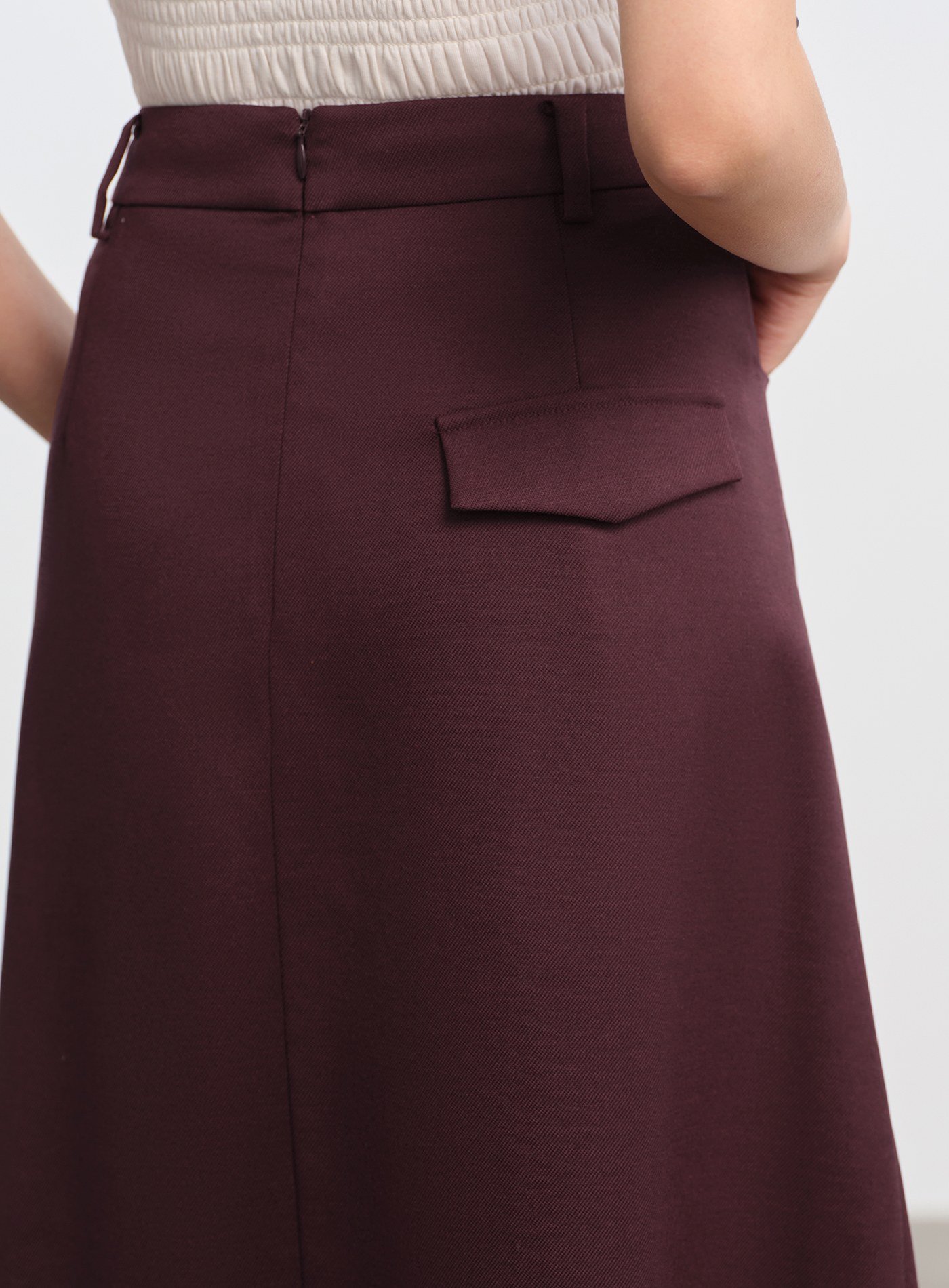 - 後中隱形拉鍊便於穿脫,整體簡約俐落,8% 羊毛增添溫潤觸感