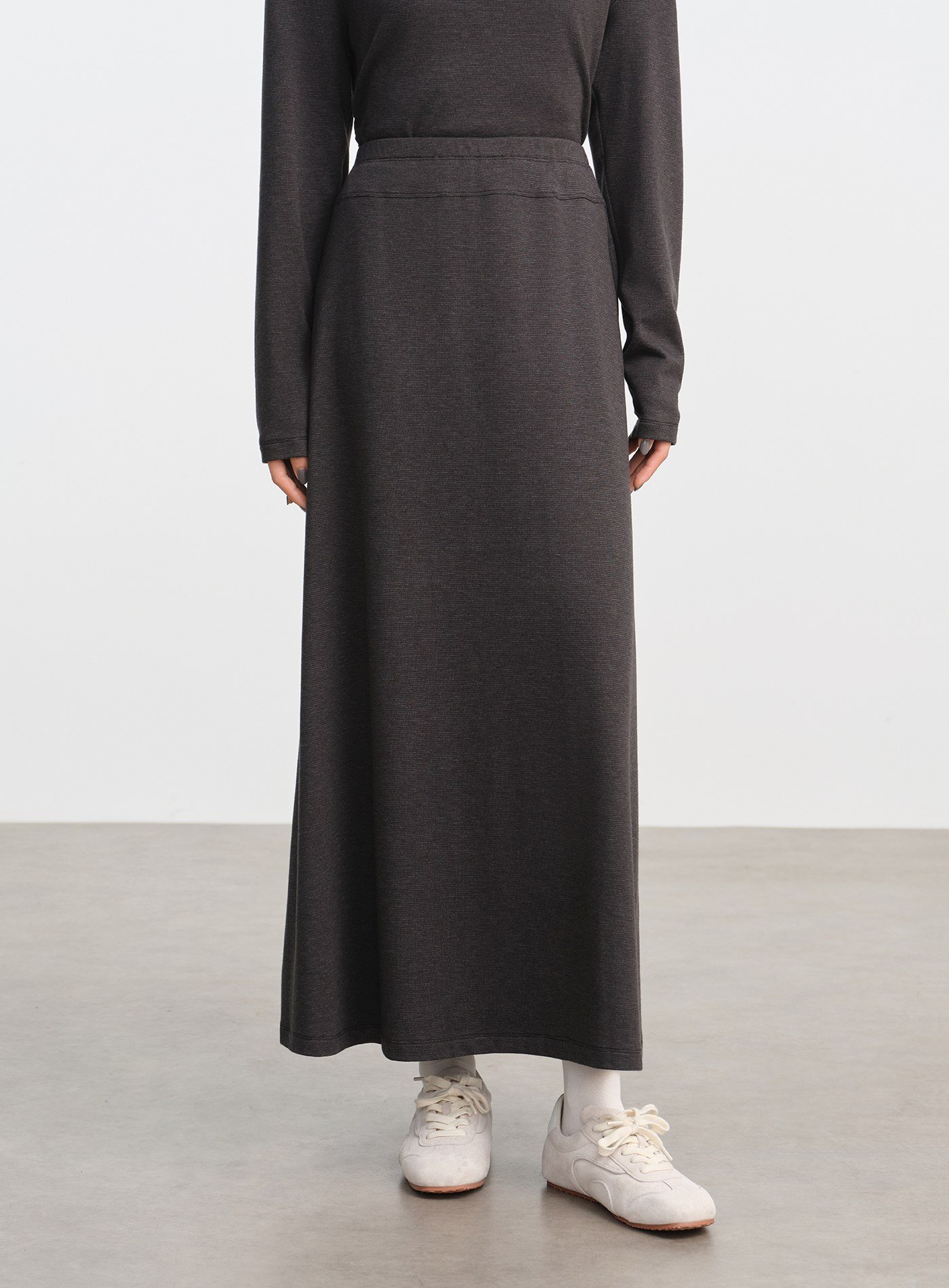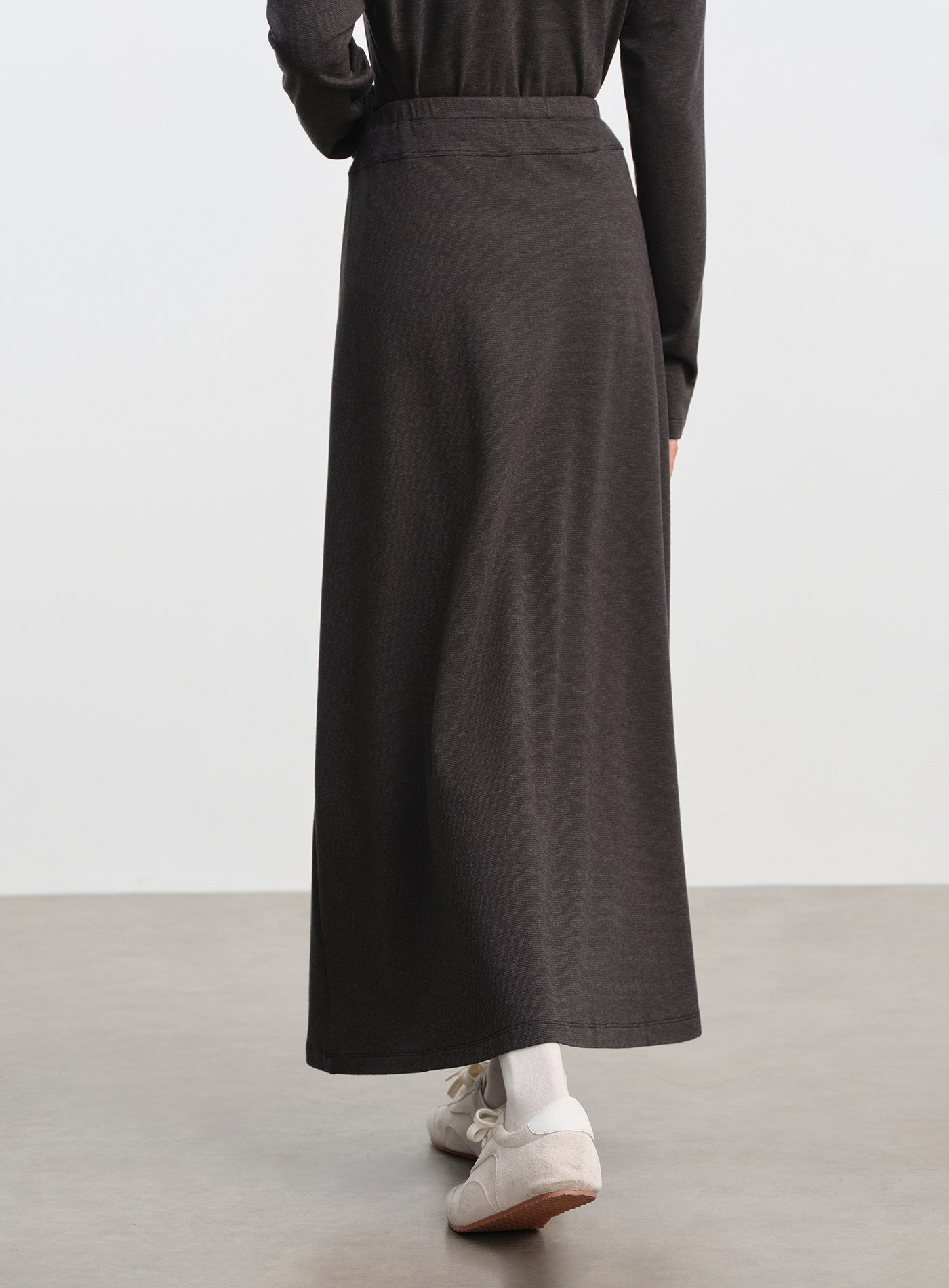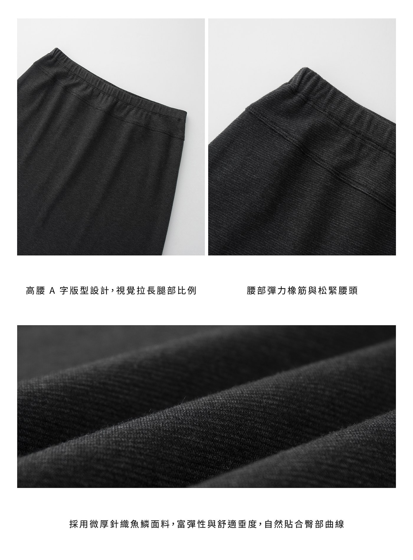 - 採用微厚針織魚鱗面料,彈性佳且垂感舒適,自然呈現臀部曲線