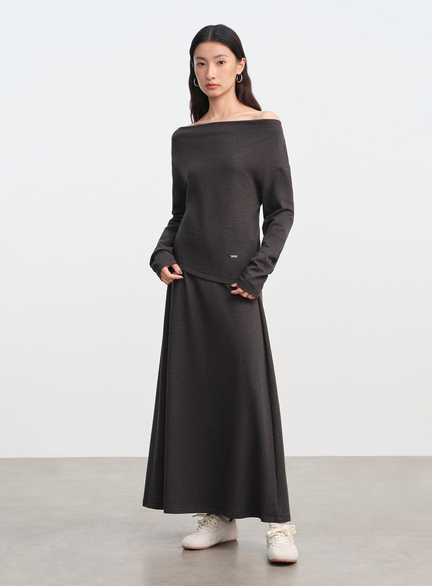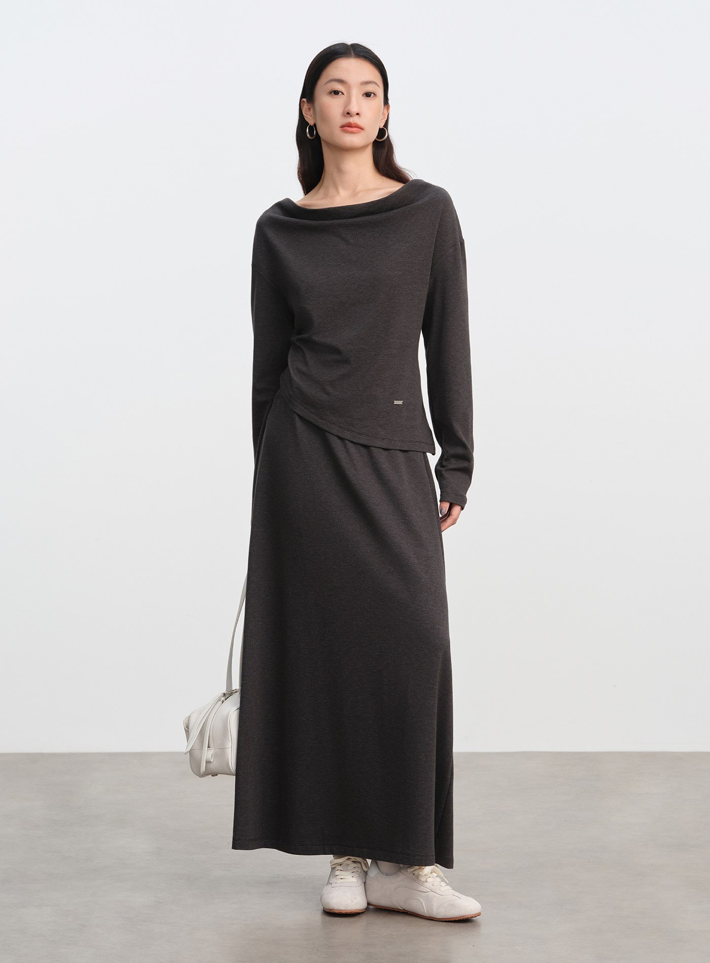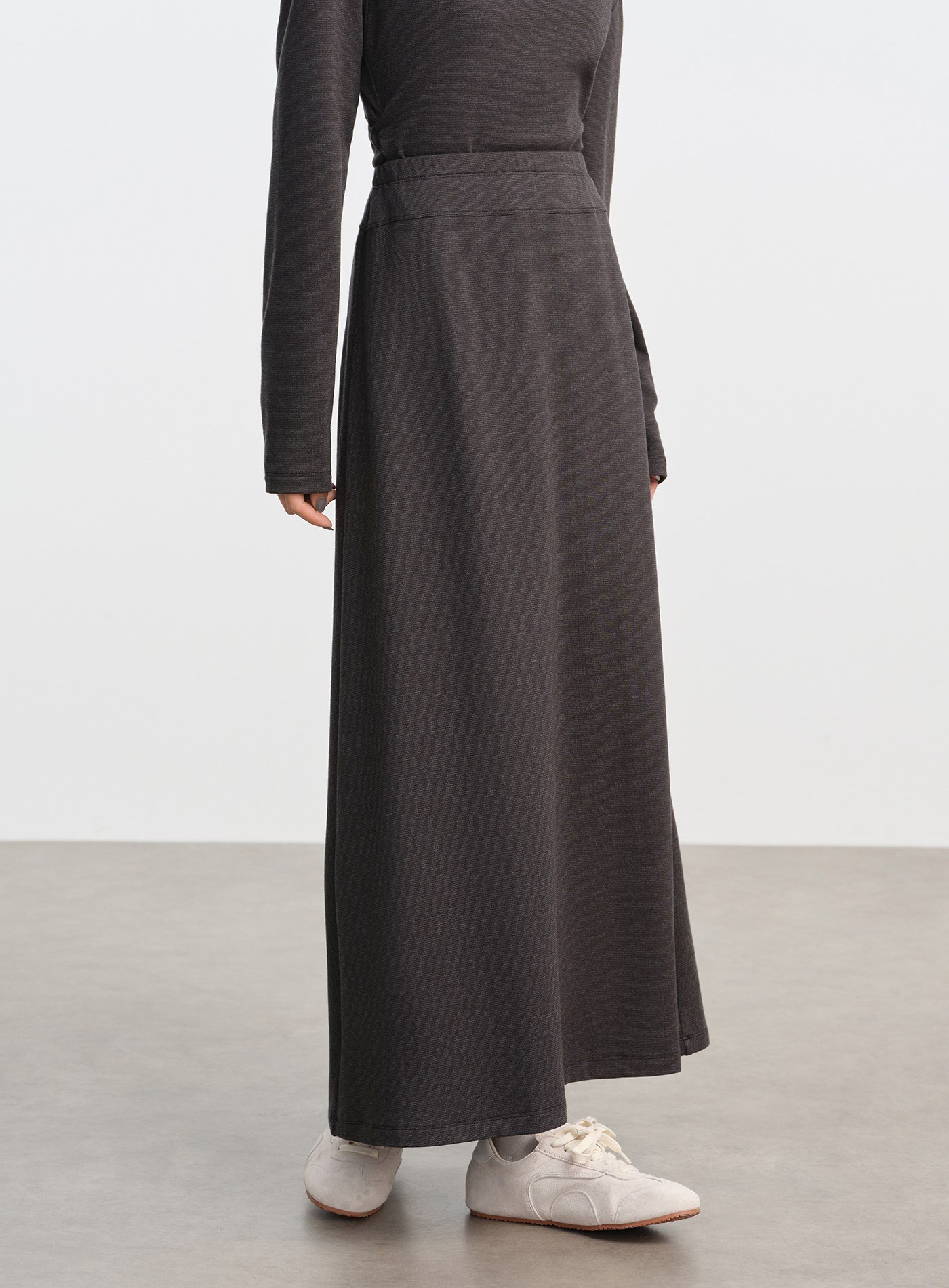 - 採用微厚針織魚鱗面料,彈性佳且垂感舒適,自然呈現臀部曲線