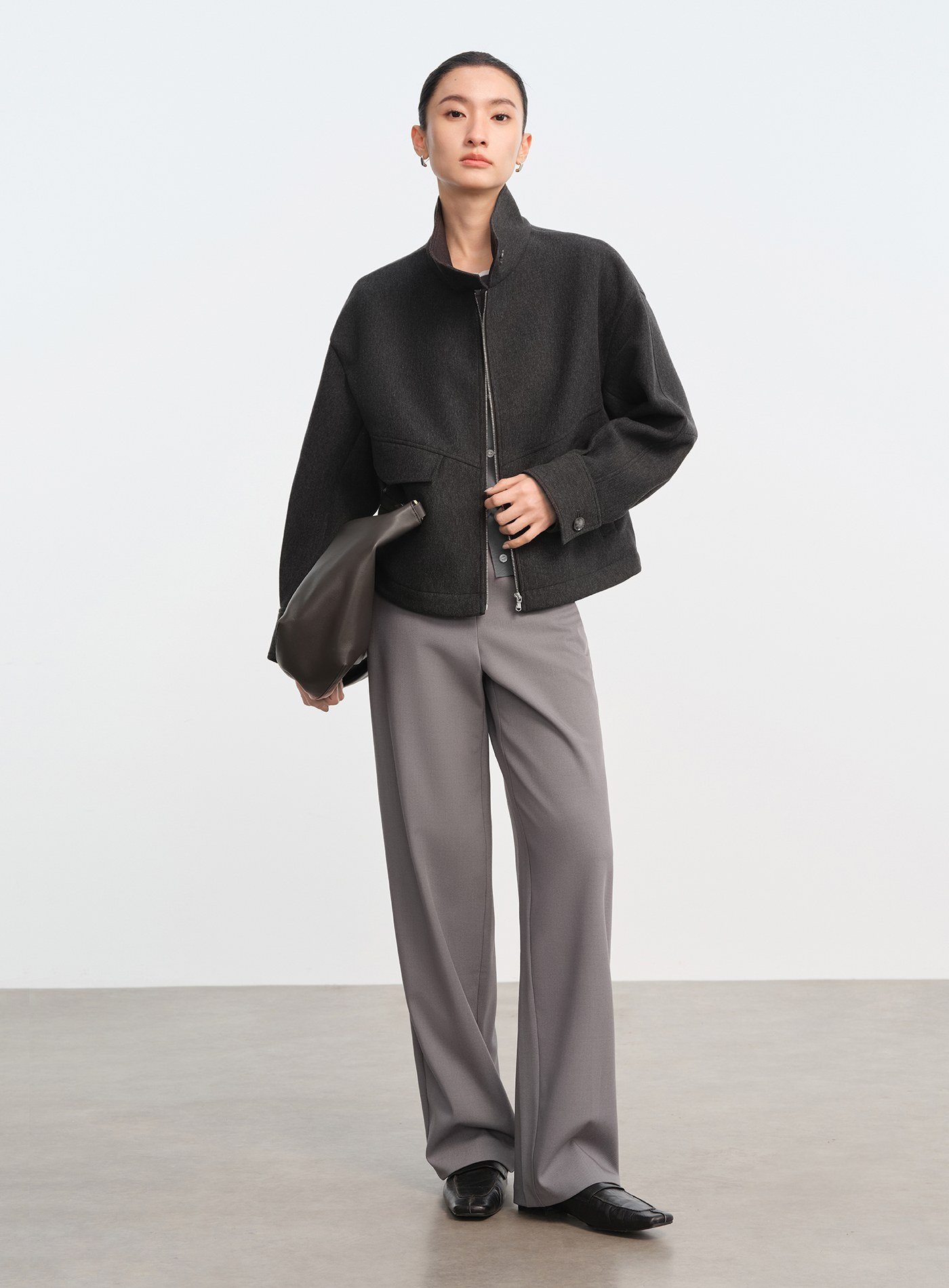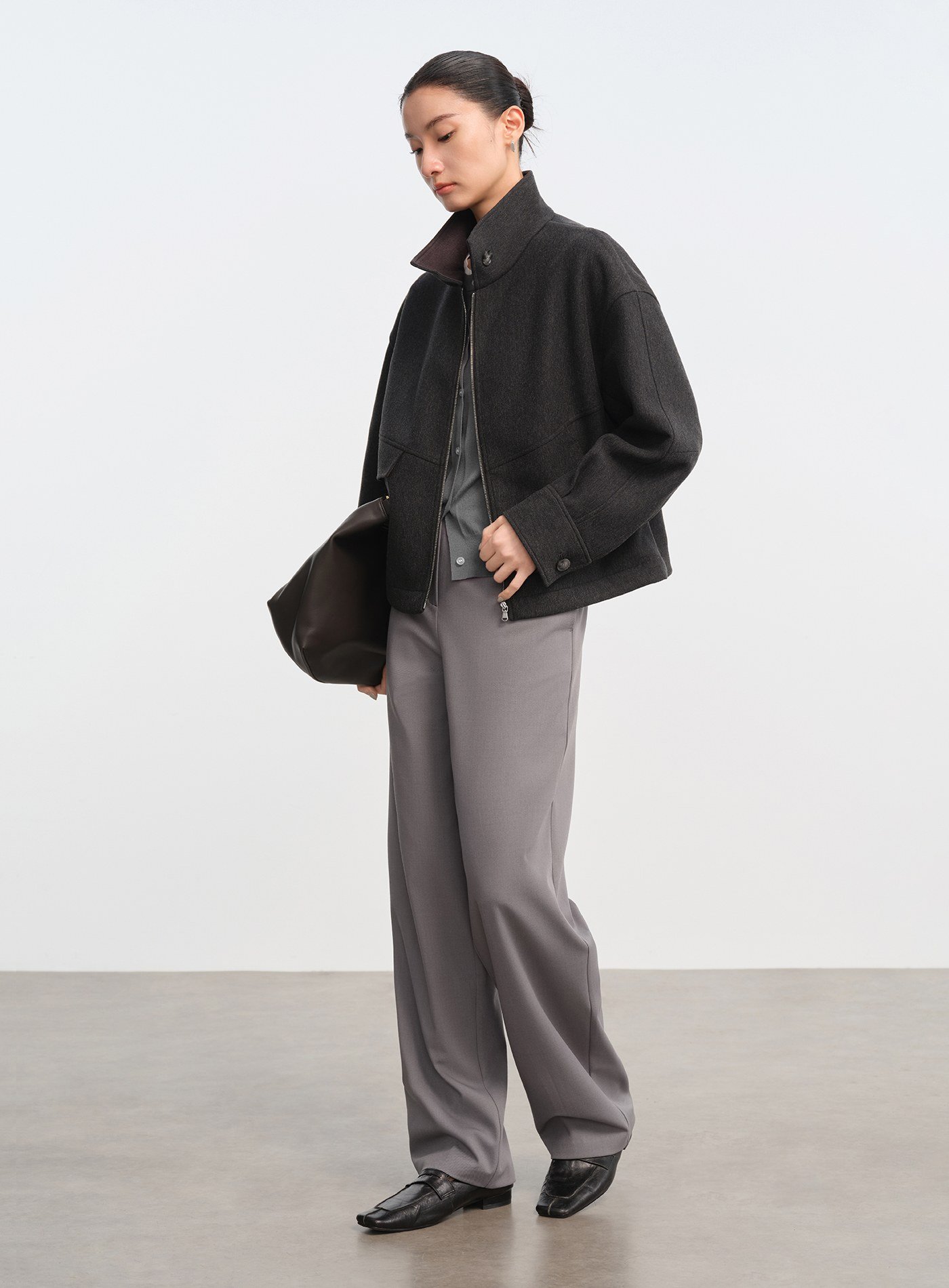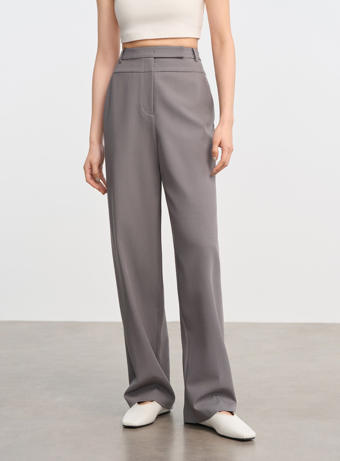 - 收腳口設計搭配內收直筒剪裁,展現乾淨俐落輪廓