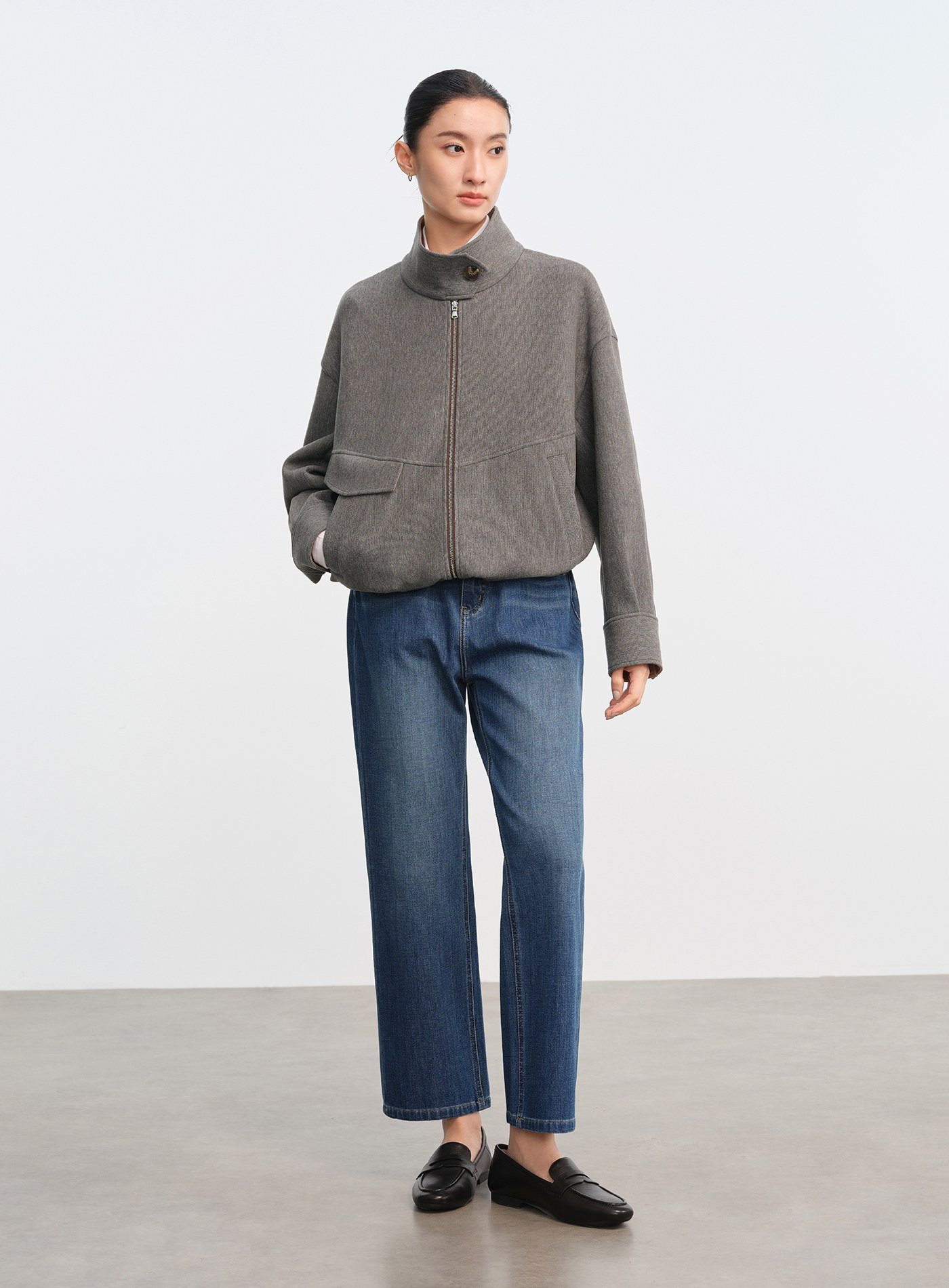 品牌金屬標挺廓後剪接寬褲$76 USD