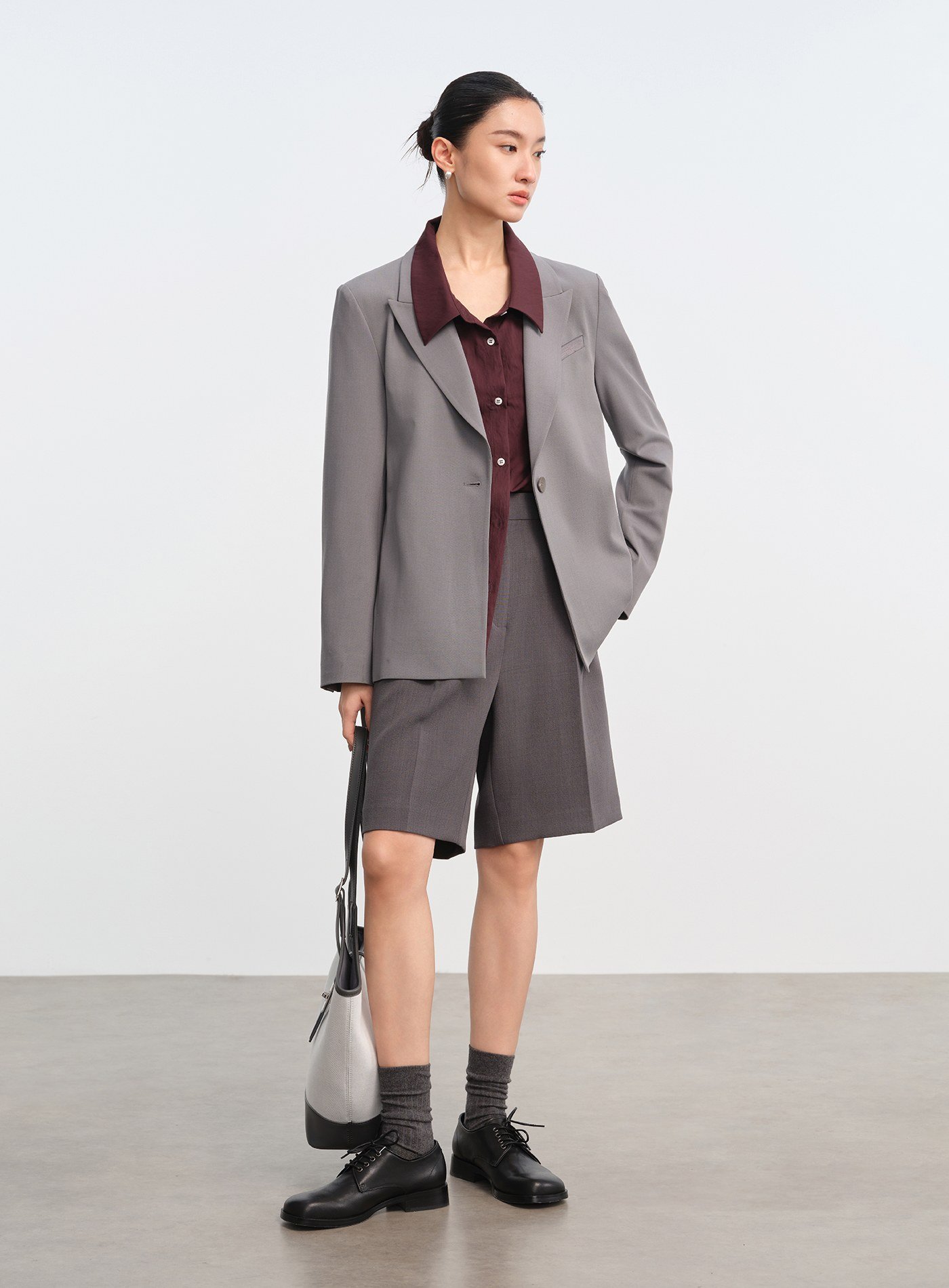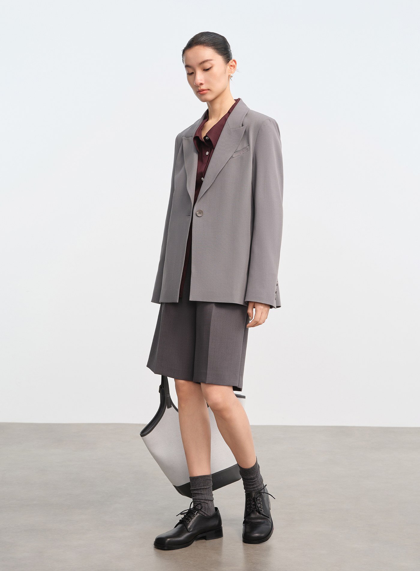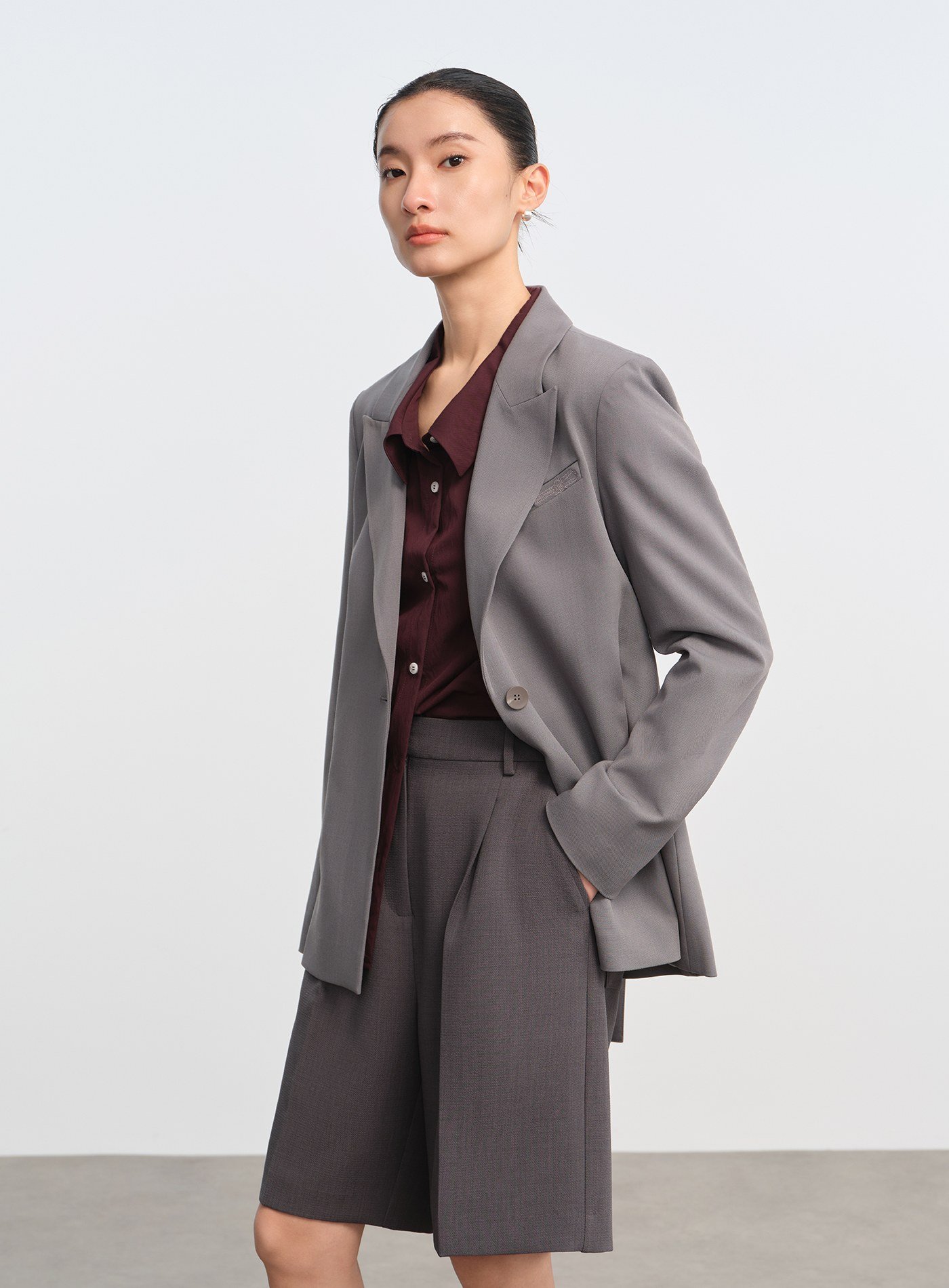 - 高腰剪裁拉長身形比例,肩部與腰部立體剪裁巧妙修飾肩寬與腰腹線條